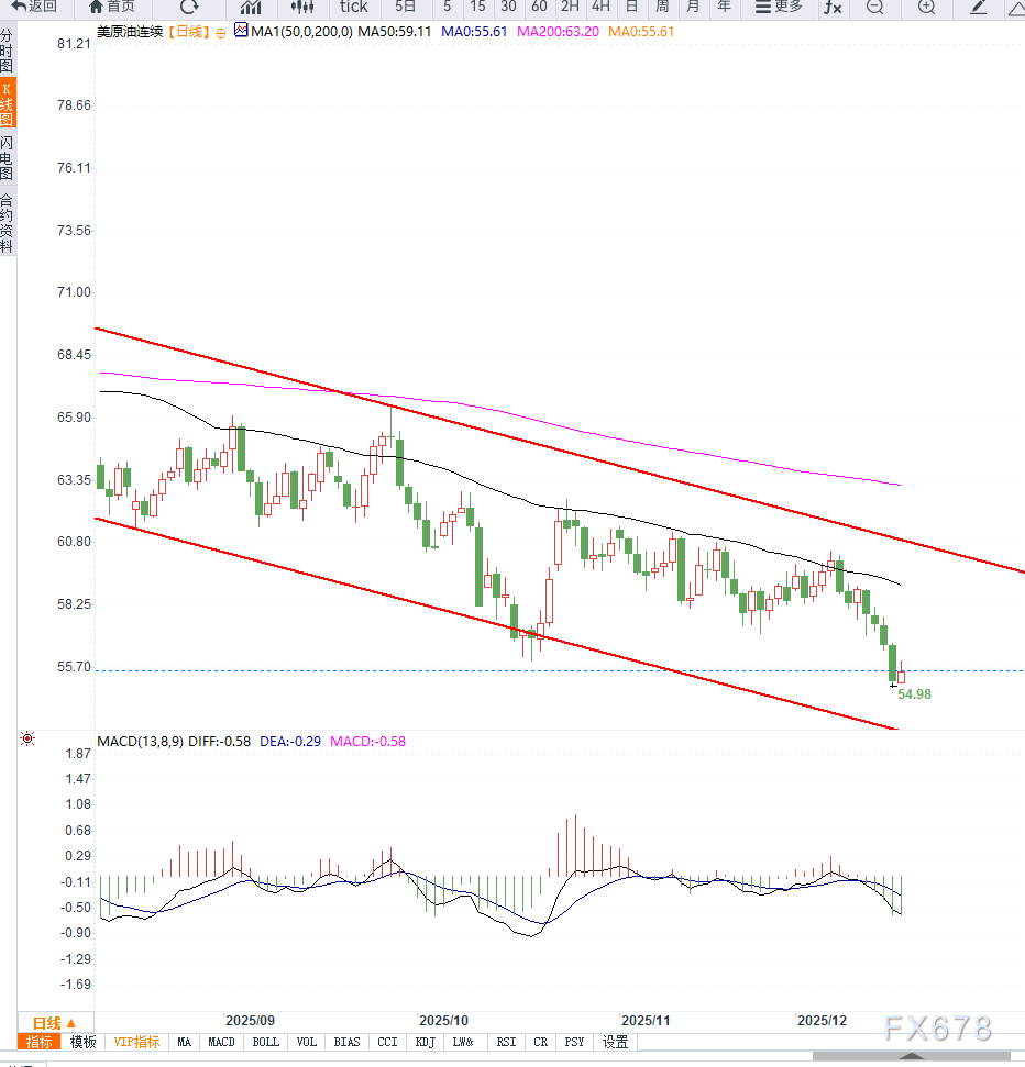 国际原油价格周三小幅反弹,未能延续昨日弱势,但目前已经跌破箱体支撑,反弹之后或将进一步下行,亚盘时段交投于55.67美元/桶附近。昨日盘中布伦特原油接连失守60美元和59美元关键关口,美油则一度跌破55美元/桶,刷新2021年初以来低位。 ![]() 近期俄乌停火谈判的最新进展,成为交易员顺势做空的重要触发因素。 尽管乌克兰仍在对部分俄罗斯炼油设施及相关资产发动袭击,黑海航运安全也未完全消除风险,同时美国还采取了针对个别产油国油轮的执法行动,但市场价格走势清晰表明——每当和谈出现积极信号,油价便承受明显下行压力。 分析认为,地缘风险溢价正在被系统性挤出油价体系,原本对冲供应中断的多头逻辑正在快速瓦解。 库存高企叠加政策变化,供应过剩或进一步放大 在供应端,美国能源信息署(EIA)与国际能源署(IEA)均警告称,全球原油市场正面临近年来少见的结构性过剩,库存水平升至近四年高位。 若和平进程推进,针对石油基础设施的攻击以及相关制裁措施可能较快解除,这将加速供应回归。 此外,制裁环境变化也可能重塑OPEC+的内部激励机制。在此前暂停增产的背景下,若成员国重新选择通过提高产量来争夺市场份额,供应端压力或再度放大。 最新美国数据显示,全国商业原油库存虽下降约180万桶,但降幅明显低于市场预期;库欣地区库存则在连续下降后一个月来首次回升。 与此同时,炼厂开工率仍处于2018年以来同期偏高水平,但这并未转化为对原油的强劲争夺。 裂解价差的变化同样印证供应宽松格局。 裂解价差跌至2月以来最低,汽油与柴油利润率同步回落,显示炼厂体系在年末阶段原料并不紧缺,成品油供应处于“舒适区间”。 需求层面暂未出现能够扭转供需失衡的力量。美国汽油需求在年末走弱,目前较去年同期下降约1.3%;尽管寒冷天气推升了取暖需求,使馏分油消费短暂回升,并且航空燃油需求有所修复,但这些局部改善未能阻止裂解价差下滑或库存维持高位。 从全球看,11月表观石油需求同比仍有增长,但中东现货市场明显转弱。Murban原油相对布伦特的溢价收窄至10月初以来最低水平,面向亚洲买家的原油报价出现明显折让,显示区域需求议价能力增强。 WTI近月合约运行在55.60美元/桶附近,价格已有效跌破前期整理区间,若进一步下行短期支撑位54.50美元,一旦失守,或指向52美元区域; 上方阻力位56.50–57.00美元,需明显基本面利多才能修复; 中短期均线系统呈空头排列,反弹更多被视为技术性修正而非趋势反转。 ![]() 当前原油市场的核心逻辑已从“供应中断担忧”转向“供应释放预期”。停火前景削弱了地缘政治溢价,而高库存、弱裂解价差与资金做空共振,构成对油价的系统性压制。 在缺乏需求端强刺激的情况下,原油更可能维持偏弱运行格局,任何反弹都需警惕被视为中期下行趋势中的阶段性修复。