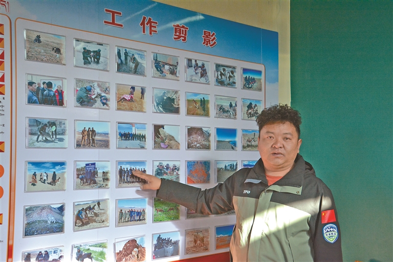 尼玛县罗布玉杰管护站负责人格桑伦珠在介绍野生动物保护工作开展情况。记者 汪纯 摄