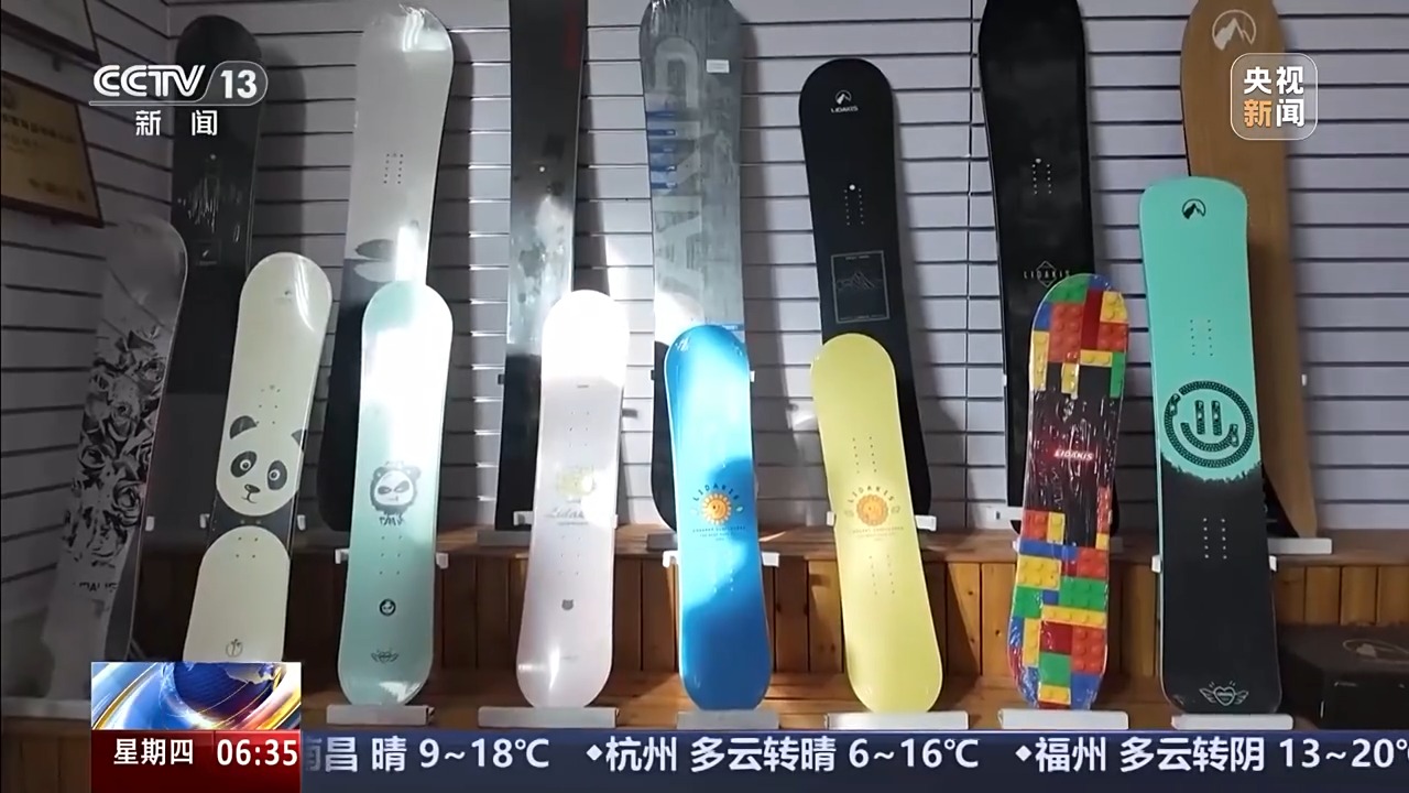 决心创立自己的品牌,靳惠媛带着团队四处交流、取经,持续投入研发,同时主动贴近市场,并针对女性、青少年等细分群体推出设计感更强的产品。 靳惠媛:现在时间空间角度都在变,如果不跟着变就要被淘汰。我们从去年做短视频获客,也建立了一个直播间,坚守产品品质,比营销要重要。开发了两年,光模具费就有几百万。超轻板是我们的发明专利,板子基本是在1.8公斤左右。东西让客户认可需要一个过程,看好明年,会有一个大的突破。 上一个雪季,这家企业生产的单板在全国滑雪场出租市场覆盖率达55%,销售额突破1500万元,同比增长17.4%。从一台造雪机的智能升级,到一个产业园的链式集聚,再到一块雪板的品牌成长,这背后是中国冰雪装备产业的加速生长。