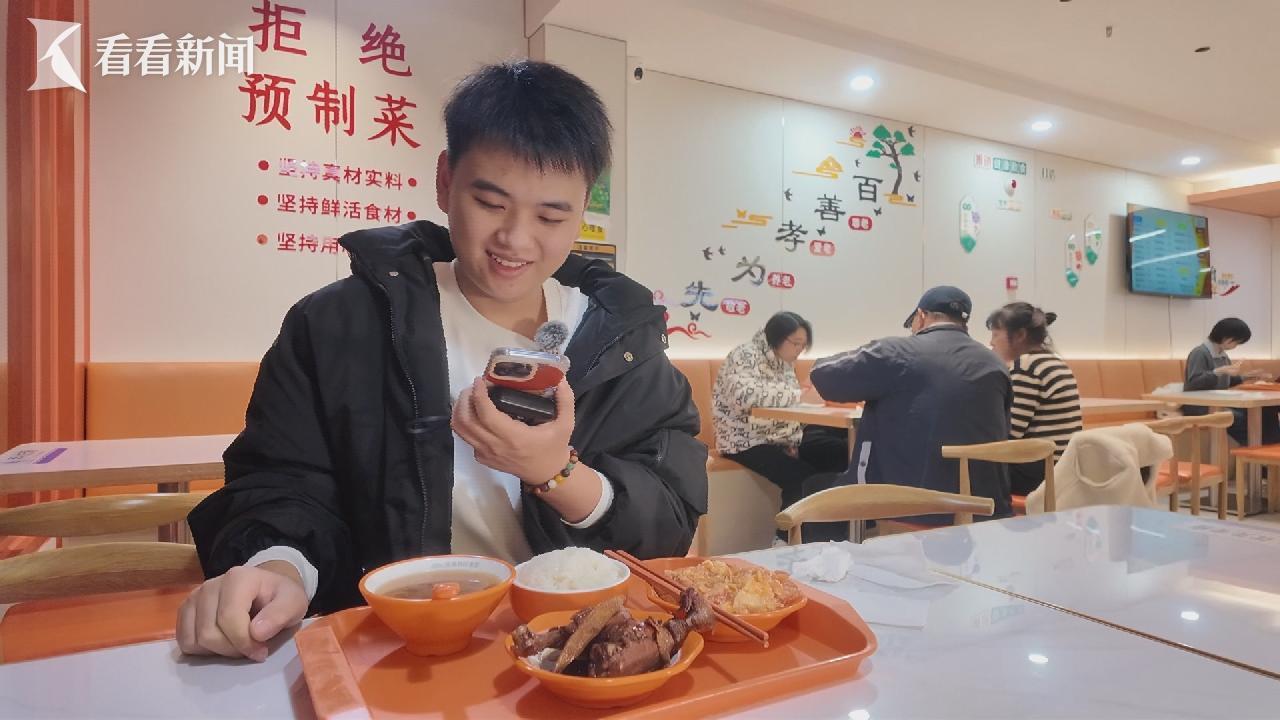而另一头,结束忙碌的沈壮奇举着手机,把公寓食堂的晚餐拍给家里人看:两菜一汤,热气腾腾,“香得很”。