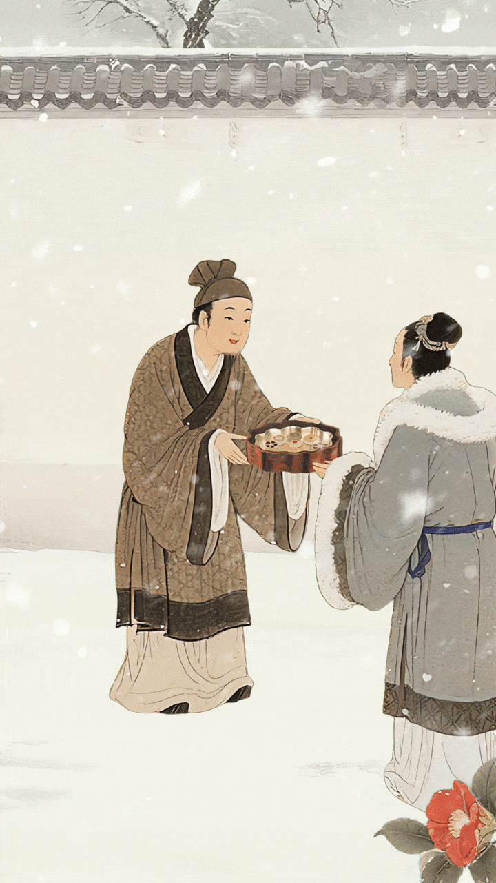 “天街晓色瑞烟浓,名纸相传尽贺冬。” 人们互赠“冬至盘” 沉甸甸的食盒里 盛满糕点与佳酿 传递的不仅是美味 更是节日里流淌的温情