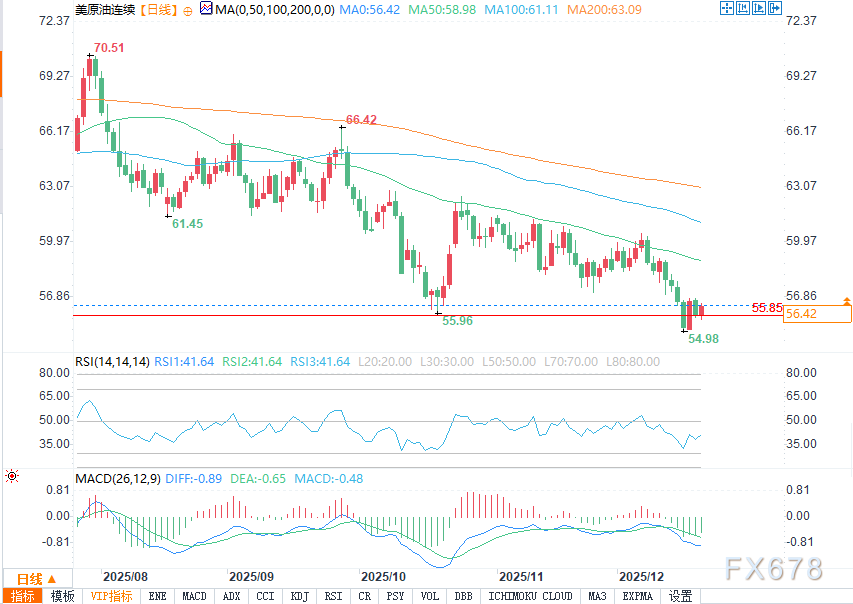 周五(12月19日)欧盘时段,WTI原油期货价格走高,盘中报56.55美元/桶,盘中涨幅近1%。当前市场中,供应过剩、需求疲软的基本面因素,与制裁及油轮封锁可能引发的供应中断风险相互博弈,交易商正对此进行综合考量。 ![]() 供应过剩预期主导市场情绪 随着石油输出国组织及其盟友(OPEC+)、美国及其他产油国原油产量持续攀升,分析师普遍预测明年全球原油市场将陷入供应过剩格局。 盛宝银行(Saxo Bank)大宗商品策略主管奥莱·汉森(Ole Hansen)指出:“当前油价持续处于低位,这表明原油市场目前供应充足,现有原油储备足以应对任何可能出现的供应中断问题。”这一观点也反映出,市场对供应端的充裕状态已有明确定价。 地缘政治风险影响力正在减弱? 通常情况下,委内瑞拉油轮运输相关的紧张局势会对油价形成上行支撑,但此次其提振作用却十分有限。 IG分析师托尼·西克莫尔(Tony Sycamore)表示,美国总统特朗普关于拦截受制裁油轮进出委内瑞拉(Venezuela)的指令方面存在不确定性,这一因素在周五削弱了地缘政治风险溢价,对油价形成压制。 据两名熟悉委内瑞拉(Venezuela)石油出口业务的消息人士透露,这个原油产量约占全球总产量1%的国家,已于周四批准两艘未受制裁的油轮启航前往东亚,此举进一步缓解了市场对原油出口受阻的担忧。 托尼·西克莫尔还提到,市场对美国主导的乌克兰和平协议持乐观态度,这也进一步缓解了供应风险担忧。 技术分析 ![]() 55.85美元的短期拐点仍是决定油价短期走向的关键参考位。若油价能站稳该点位上方,将释放新的买盘信号,有望再度测试56.85美元的周度高点;一旦突破该高点,油价或进一步向57.60美元的中期拐点迈进。 不过,从摆动指标走势来看,原油市场主趋势仍处于下行通道,且50日均线位于59美元附近。市场预计,若油价上行触及该区间,卖盘力量或将再度涌现。若油价失守55.85美元支撑位,则可能再度回落至本周低点54.84美元。 市场展望:短期油价走势偏空 尽管地缘政治事件偶有对油价形成支撑,但供应持续增长的大趋势仍主导市场情绪。美国银行分析师指出,油价下跌或最终抑制原油产量,这或将阻止油价陷入暴跌,但短期内市场供需失衡的格局仍将持续。 除非买盘力量能够推动油价站稳短期拐点上方,否则市场大概率将维持偏空基调,交易商也将做好应对油价进一步走弱的准备。