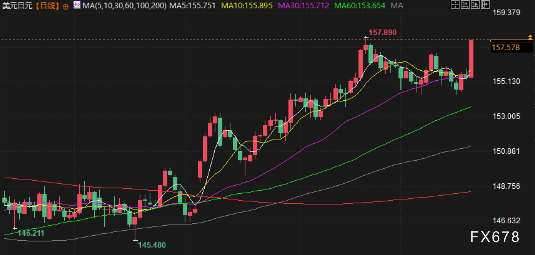 0美元兑日元周五上涨,最高升至157.76,为四周来最高水平,创下10月初以来最大单日涨幅。日本央行周五加息25个基点,将短期利率上调至0.75%,利率水平创30年来新高,这也是2025年1月以后,日本央行11个月来再次进 ...