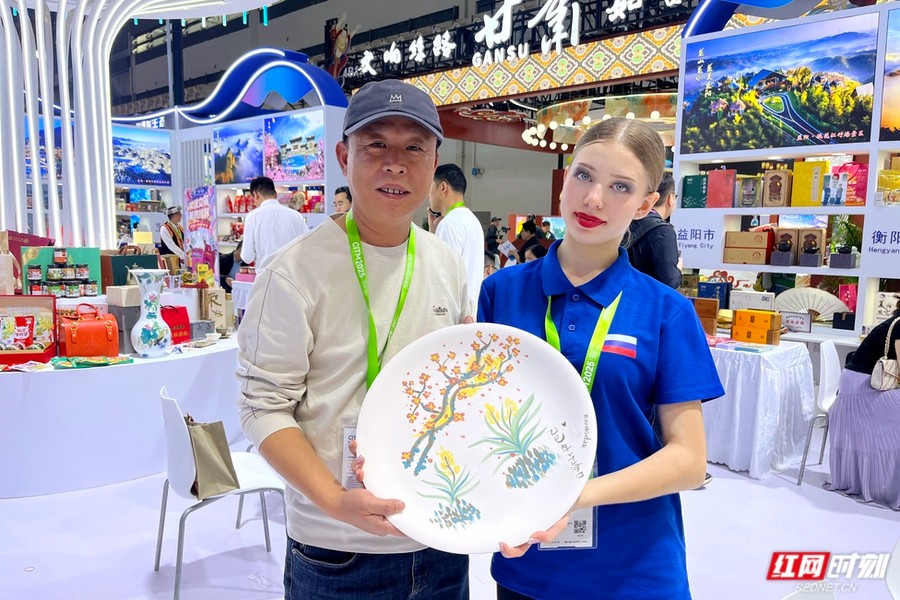 参展商与俄罗斯客人共画釉下五彩瓷。 此次大规模、高效率参展,是湖南深化与海南自贸港战略联动,共同开拓入境旅游市场的关键一步。展会期间,湖南省文化和旅游厅与海南省旅行社协会及头部俄语系旅行社深入洽谈,就共同开发“经海南入境,延伸至湖南”的联程旅游产品达成多项共识,并邀请海南头部旅行社赴湘实地考察。 此前,在第五届湖南旅游发展大会上,湘琼两省文旅部门已签署战略合作协议。湖南正积极依托海南自贸港的“国际旅游门户”与客流平台优势,通过持续联动推广,致力于将湖南打造为入境旅游的重要目的地和延伸第二站,从而进一步提升“三湘四水 相约湖南”品牌的国际影响力,推动文旅产业高质量发展。