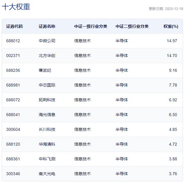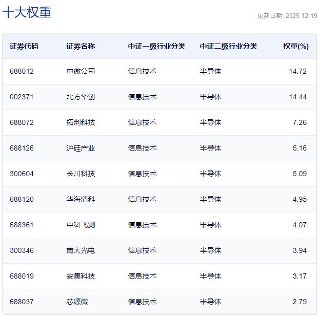 中证半导体材料设备主题指数主要权重股 点评:半导体设备ETF(561980)和半导体产业ETF(159582)半日涨幅分别达到3.86%和3.84%。其中,半导体设备ETF(561980)规模较大,份额为12.66亿份,半日成交金额为2.83亿元。 中证半导体产业指数从上市公司中,选取不超过40只业务涉及半导体材料、设备和应用等相关领域的上市公司证券作为指数样本,以反映半导体核心产业上市公司证券的整体表现。