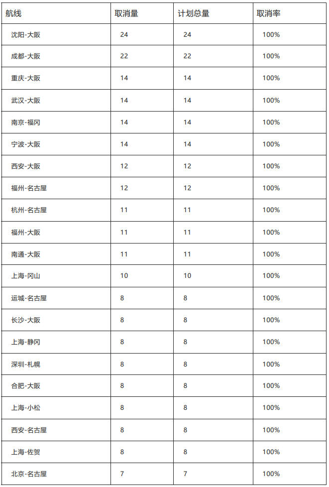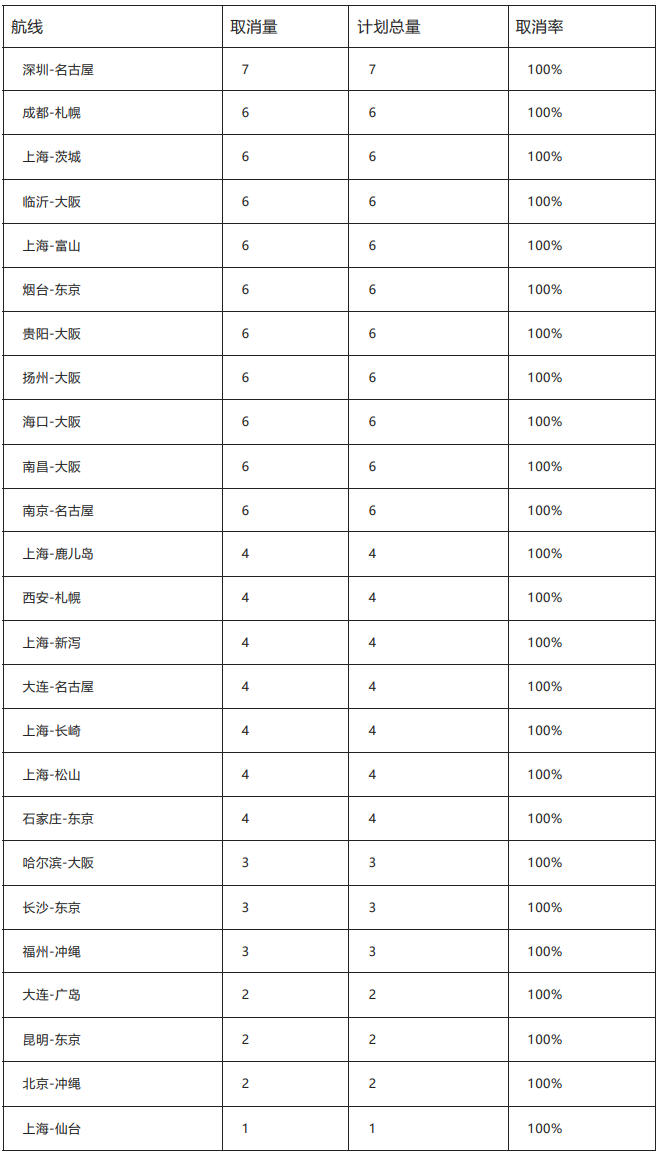 航班管家数据显示,2026年1月中国大陆赴日航班取消量已超两千班,46条中日航线未来两周“零航班”。 航班管家最新统计显示,2026年1月中国大陆往返日本航班取消量已达2195班次,整体取消率40.4%;其中46条中日航线在未来两周(2025年12月23日—2026年1月5日)内计划航班全部取消,取消率100%,涉及中日双方共38座机场。