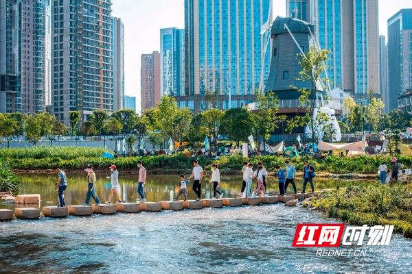 “湘品”沿着中非经贸合作的快车道,走向非洲乃至全球市场。 这不再只是一条河的治理。 这是一座城,如何把生态的根扎深、将自然的本用活,最终让发展之树结出民生硕果的当代实验。 圭塘河写下这样的答案:唯有根深,方能叶茂;唯有本固,才能远行。 而这,正是所有城市在生态与发展之间,寻找的那条——既通向远方,又回归人心的路。 河与人|答案,写在每一声笑里 一条河的重生,终要回答: 城市为谁而治? 河,不只是流淌的水; 人,不只是岸上的居者。 当河流恢复清澈,当堤岸归还自然,真正发生的是一场无声的相遇—— 河与人,在岁月里重新认出彼此。 治理最温暖的抵达,莫过于此。 于是,白鹭野鸭来了,425种动植物安家。河畔成了城市的“呼吸带”:跑者的脚步、漫步的身影、孩童的嬉戏,交织成日常韵律。超过20公里的滨水绿道、“十园百点”的健身设施,构成了惠及百万居民的“15分钟绿色生活圈”。这些触手可及的生态福祉,是“幸福靠山”最生动的模样。