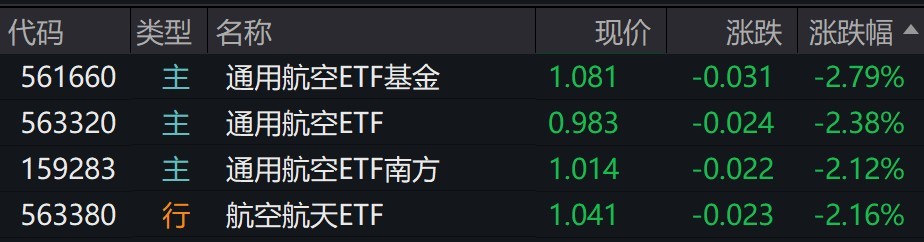 每经记者|叶峰 每经编辑|肖芮冬 航空概念股走低,航天电子跌超6%,中国卫通跌超5%,中科星图跌超3%。 受盘面影响,通用航空、航空航天相关ETF跌超2%。