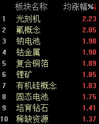 资金面,央行公告称,12月23日以固定利率、数量招标方式开展了593亿元7天期逆回购操作,操作利率1.40%,投标量593亿元,中标量593亿元。Wind数据显示,当日1353亿元逆回购到期,据此计算,单日净回笼760亿元。 消息面,国际半导体产业协会(SEMI)发布的报告显示,2025年全球半导体制造设备总销售额预计达1330亿美元,同比增长13.7%,创历史新高。 中国有色金属工业协会锂业分会发布2025年11月锂行业运行情况,11月碳酸锂期货价格逐步抬升,波动逐步加大。锂企业三季报业绩回升,市场对未来锂价预期乐观。供应端,市场库存逐步加速去化,宁德时代旗下锂矿消息仍形成扰动,锂盐产量小幅下跌,锂辉石提锂产量小幅增加,锂云母提锂产量小幅下跌。需求端,新能源车在补贴退坡前抢销量,储能表现亮眼。 国家发展改革委、国家能源局发布的《关于促进光热发电规模化发展的若干意见》提出,到2030年,光热发电总装机规模力争达到1500万千瓦左右,度电成本与煤电基本相当;技术实现国际领先并完全自主可控,行业实现自主市场化、产业化发展,成为新能源领域具有国际竞争优势的新产业。 板块方面,光刻机板块走强,同飞股份、中光防雷、美埃科技涨幅较大。锂电池产业链发力上涨,华盛锂电、鹏辉能源、滨海能源、天际股份等涨幅居前。