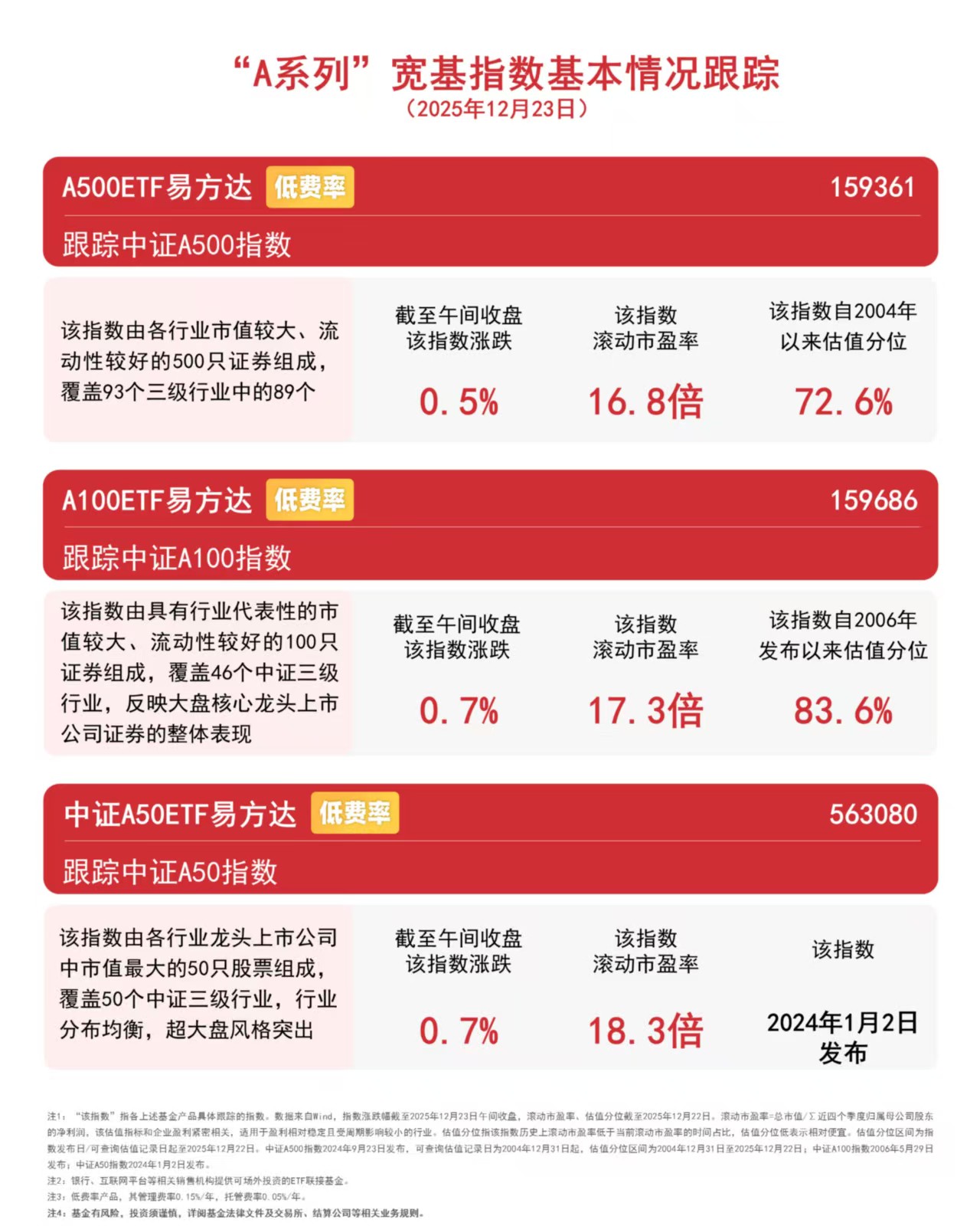 0今日早盘,“A系列”宽基指数低开后持续拉升。截至午间收盘,中证A500指数上涨0.5%,中证A100指数上涨0.7%,中证A50指数上涨0.7%,A500ETF易方达(159361)半日成交额近65亿元,获超10亿份净申购。Wind数据显示,截 ...