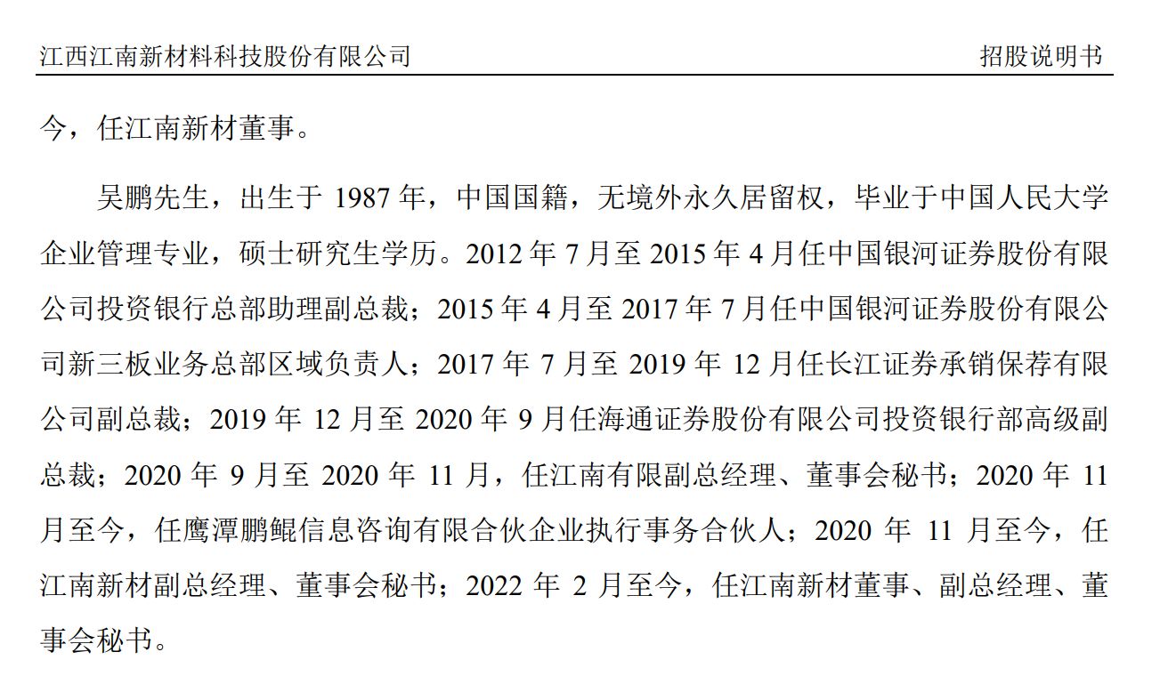 招股书揭示了魏忠伟转型的巨大回报:他通过员工持股平台间接持有公司0.03%的股份。按照上市首日总市值计算,这部分股份的市值约为9960万元。对比其加入沐曦股份后,即2024年最后三个月约10万元的月薪水平,这笔持股市值无疑实现了质的飞跃。 类似的“造富神话”在2025年并非首次上演。 2025年3月20日,江南新材上市首日涨幅达到606.83%。公司副总经理兼董秘吴鹏同样出身投行,曾先后任职于银河证券、长江证券承销保荐和海通证券。吴鹏在2020年9月入职江南新材,当月即参与了股权激励,通过持股平台持有161.72万股。按上市首日收盘价74.50元计算,吴鹏的身家高达1.2亿元。