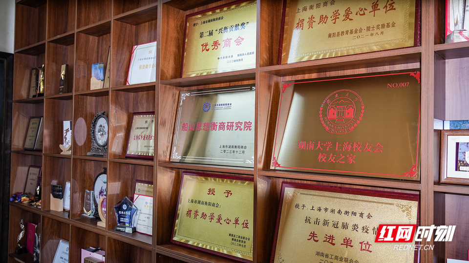 商会荣誉墙。 传承衡商薪火,共铸金字招牌 历经十余年发展,商会从一份乡情初心,已然升华为全体会员共同的使命与责任。面向未来,凌菲菲描绘了一幅更为宏大的蓝图。 传承,是商会永续发展的根基。凌菲菲认为,传承的核心是价值观与使命的延续。商会必须坚持已经建立的民主决策、财务透明等现代治理制度,实现“以制度为基,超越个人”。同时,要有意识地培养下一代管理层,完成“经验”与“活力”的代际接力,让商会火炬生生不息。 发展,是构建“三元一体”的价值平台。凌菲菲对未来的展望,是打造一个“有温度、有深度、有高度”的卓越组织。“有温度”是根本,要继续建设好会员的温暖之家;“有深度”是核心竞争力,要聚焦前沿产业,进行深度研究和资源整合,赋能会员企业;“有高度”是社会追求,要集体承担更多社会责任,夯实“诚信衡商”的金字招牌,提升公共美誉度。 反哺,是融入血脉的赤子之情。商会在返乡投资和公益慈善上成果斐然。凌菲菲给记者讲述了一个典型案例。执行会长蒋卫兵从打工者成长为“专精特新”企业创始人,并在商会感召下回乡投资4000多万元建立生产基地,创造近千岗位。“像这样的企业商会已有数十家。同时,商会每年固定捐款十万元助力家乡爱心助学,用实际行动点亮困难学子的未来。” 凌菲菲对新一代在沪衡商身怀厚望。她寄语大家,既要不忘“敢为人先”的衡阳精神底色,做饮水思源的赤子;更要敢于“开拓创新”,在数字经济、人工智能等新领域留下衡商的印记,成为真正的“企业家”和“产业创新者”。 “商会这把火炬,需要一棒接一棒地传递下去。”凌菲菲语重心长,“愿我们共同努力,不负时代,不负桑梓,让‘衡商’二字成为上海这片星空中一颗璀璨且受人尊敬的星辰!”
