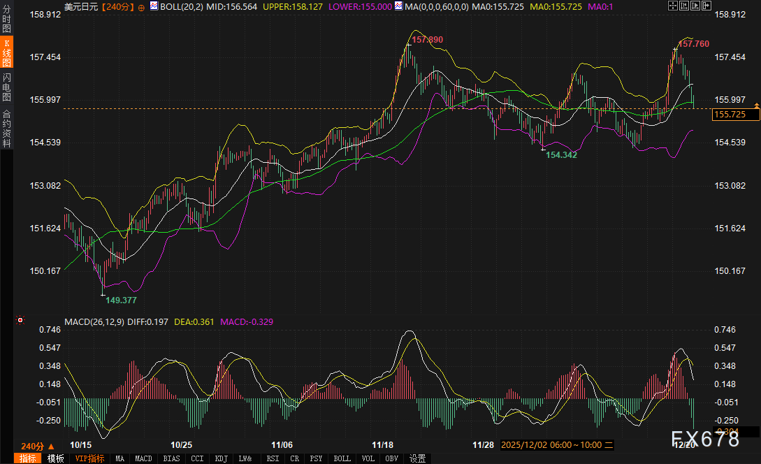 周二(12月23日),美元兑日元交易于155.984附近,日内下跌0.66%。市场在上周日本央行历史性加息后陷入整理,一方面消化政策声明中的鹰派内核,另一方面则在评估全球债券市场抛售暂停及年末流动性减弱带来的影响。汇价目前徘徊于关键技术水平附近,多空双方在基本面预期与技术面信号间寻找新的平衡点。 ![]() 上周五日本央行的利率决议无疑是近期市场的核心驱动事件。央行将政策利率上调至三十年高位,这一行动本身具有标志性意义。然而,市场最初的解读聚焦于总裁植田和男对下一次加息时机的“含糊”表态,导致日元在决议公布后不升反跌,这反映了市场对美日利差收窄速度的失望情绪。 然而,深入剖析会议声明及后续信息,央行的沟通策略被更多市场人士解读为一种“保留灵活性的鹰派”。多位熟悉央行思路的分析师指出,这种模糊性并非犹豫,而是为应对未来数据波动预留空间,其背后是继续推高借贷成本的坚定决心。关键鹰派线索包括: 1. 政策焦点转移:日本央行明确表示对海外关税风险的担忧已消退,宣告政策辩论重回国内经济基本面,这为持续加息扫除了一大外部障碍。 2. 对通胀与薪资的信心:央行承诺继续加息,并预期明年企业薪资将持续增长,显示其对可持续达成2%通胀目标的信念增强。植田强调“实际利率仍然非常低”,且经济对加息的韧性充足,这些均为后续行动铺路。 3. 汇率的政策纽带作用:植田罕见地提前透露,部分委员担忧日元疲软通过进口渠道加剧通胀。这直接将日元汇率与加息节奏挂钩。前日本央行官员、现任高盛日本董事总经理的Akira Otani预计明年7月可能再次加息,但也承认“如果日元继续下跌,下一次加息可能会提前”。这种表态使得日元贬值本身可能成为触发更快政策响应的催化剂。 与此同时,日本财务大臣周二发出了准备干预市场以阻止日元下滑的严厉警告,形成了“口头干预”与“汇率影响加息”的双重防线,显著压制了日元的单边空头氛围。盛宝银行首席投资策略师Charu Chanana指出,日本央行缓慢的加息周期与美联储未来的宽松预期,意味着日元单边持续疲软的可能性降低,当美国收益率下降或风险情绪转变时,日元存在走强契机。 技术面透视:关键区间内的动能转换 从技术分析角度看,美元兑日元在四小时图表上正处在一个关键的十字路口。 动能指标:MACD(26,12,9)指标显示,DIFF线(0.217)位于DEA线(0.366)下方,且柱状图为负值(-0.294),形成死叉结构。这明确指示短期内的上行动能正在衰减,价格面临调整压力。 波动区间:布林带(20,2)目前呈现收口迹象,中轨位于156.577,上轨158.115,下轨155.039。汇价已回落至中轨下方,显示短期内多头动能暂歇,市场正测试中轨的阻力有效性。 基于当前图表结构,关键的支撑与阻力区间如下: 上方阻力区间:首要阻力集中在156.50 - 156.80区域。该区域不仅是布林带中轨所在,也汇集了前期部分成交密集区及心理关口。若汇价能有效站稳该区域上方,则可能再次向上轨158.00-158.20区域发起测试,该区域也是上周利率决议后的反弹高点,阻力强度较大。 下方支撑区间:近期首要支撑关注布林带下轨155.00-155.30区间,该位置同时是重要的整数关口。若该支撑被有效跌破,可能引发更深度的技术性回调,看向更下方的技术支撑位。 盘中关注点在于:1)价格在156.50-80阻力区的反应,观察能否出现有效的遇阻回落信号或放量突破;2)MACD指标能否在零轴附近获得支撑并重新金叉,或进一步向零轴下方发散;3)布林带是否继续收窄,预示着波动率下降和潜在突破的临近。 ![]() 其他市场的动态为日元前景提供了交叉验证。全球债券市场在经历猛烈抛售后出现喘息:日本国债收益率在创下多年乃至历史新高后(如10年期收益率自1999年以来首度升破2%)于周二回落;德国长期国债收益率也从十四年高点下滑。这种全球债市抛售的暂时停歇,缓解了利差极端化对日元的瞬时压力,但长期趋势仍有待观察。 展望未来,日元汇率将进入一个多空因素复杂交织的阶段。支撑因素包括:日本央行明确的紧缩倾向、对汇率贬值的警惕及潜在干预风险、全球债市剧烈波动后的技术性回调、以及地缘政治紧张可能引发的避险需求。压制因素则在于:美联储降息路径尚存不确定性,美日绝对利差仍悬殊,市场对日本央行加息步伐的“信任验证”需要时间,以及年末市场流动性下降可能放大波动。 综合来看,美元兑日元短期内大概率维持在155.00 - 158.20的宽幅区间内震荡整理。上行空间受制于技术阻力、干预威胁以及市场对提前加息的再定价;下行则受到利差现实和日本央行“不急于连续加息”的沟通基调支撑。未来一段时期,除了密切关注美国经济数据对美联储政策预期的影响外,日本春季劳资谈判的初步结果、任何来自日本财务省更实质性的干预动作,以及全球主要债券收益率的走势,都将成为打破当前平衡、驱动汇率选择方向的关键催化剂。交易者需警惕在低流动性环境下,市场对消息的过度反应。