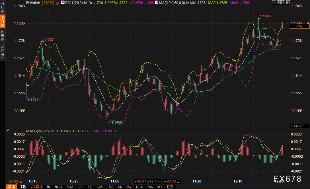周二(12月23日),全球外汇市场在圣诞假期前的最后一个完整交易日呈现出典型的年末清淡特征。欧元兑美元交投于1.1785附近,日内小幅上涨0.23%,暂时摆脱了近期承压的态势。美元指数则微幅走软至98.12水平。这种盘面表现,反映出在重大数据和事件真空期,市场流动性下降带来的技术性调整占据主导,但中长期逻辑的博弈并未停歇。 ![]() 当前欧元汇率受到两方面因素的牵引。一方面,欧洲央行政策制定者的言论为市场提供了短期安抚。执行委员会成员伊莎贝尔·施纳贝尔近日在接受媒体采访时明确表示,尽管她预期利率的下一步行动将是上调,但这在“可预见的未来”不会发生。此番表态延续了欧洲央行近期维持政策耐心的基调,缓解了市场对过早收紧的担忧,为欧元汇率提供了一定支撑。另一方面,来自美国的政策不确定性构成了反向压力。前总统特朗普近期的关税言论持续引发市场的避险情绪,这种不确定性支撑了美元的避险属性,间接压制了欧元的上行空间。此外,俄乌局势等地缘政治风险尚未完全消退,也构成了欧元区的潜在外部风险。 欧洲内部,法国的财政动态值得关注。消息显示,法国2025年预算很可能会被推迟至明年审议。这一技术性操作在短期内可能为法国国债市场带来一些喘息空间,甚至在一定程度上缓解更广泛的欧洲固定收益市场的压力。但从长远看,这并未解决欧元区内部财政纪律与经济增长之间的根本矛盾。数据显示,德国进口价格环比上涨0.5%,高于预期的0.1%,同比降幅亦小于预期,这或许暗示输入性通胀压力并未如预期般迅速消退,为欧洲央行的政策路径增添了复杂性。 技术面:关键位置的争夺与指标信号解析 从欧元兑美元240分钟图表观察,当前价格走势呈现出在关键技术位附近争夺的态势。 布林带分析:布林带(20,2)中轨位于1.1736,上轨位于1.1783,下轨位于1.1688。目前报价紧贴上轨,显示短期走势偏强,正测试上方动态阻力。若能有效站稳上轨上方,可能打开进一步向上测试1.1800整数关口的空间。下方中轨1.1736构成初步支撑,而1.1688的下轨则是更为关键的防守位置。 MACD指标解析:MACD(26,12,9)显示,DIFF值为0.0012,DEA值为0.0005,柱状图(MACD)为0.0013。DIFF与DEA均位于零轴上方,且DIFF高于DEA,形成看涨金叉后的扩散状态,柱状图呈现红色并放大,表明短期上涨动能正在累积。这是一个偏多的技术信号。 支撑阻力区间预测: 关键阻力区间:1.1785-1.1800。该区间汇聚了当前布林带上轨及重要的心理整数关口。汇价在此区域的反应至关重要,若持续无法突破,则可能重回震荡。 核心支撑区间:1.1735-1.1700。该区间包含布林带中轨及前期多次触及的波动低点区域。若跌破1.1700,则可能向下考验1.1688的下轨支撑,并打开更深度的回调空间。 盘中关注点:交易者需密切关注汇价在1.1783上轨附近的表现,以及随后在1.1800关口的动能情况。同时,下方1.1736中轨的支撑有效性需保持观察。任何一方的有效突破,都可能为节后行情指明短期方向。 其他市场方面,作为传统避险资产的黄金再创历史新高,触及每盎司4497.55美元,反映出市场在节日清淡交易中仍存有隐性的避险需求。美国国债收益率小幅回落,德国国债价格也有所反弹,这在一定程度上缓解了欧元区外围国家的债券压力,间接为欧元提供支撑。 ![]() 展望后市,欧元兑美元的走势将取决于短期技术性反弹动能与中长期基本面压力的角力结果。 短期来看,受益于年末头寸调整、流动性稀薄带来的波动放大效应,以及欧洲央行官员的温和言论,欧元存在继续向上试探阻力的可能。知名机构IFR的分析观点也认为,市场获得了一些喘息之机,带来了“不错的圣诞礼物”。这种“缓解”主要来自于债市的反弹和市场对激进政策预期的时间后移。 然而,将视角拉长,欧元面临的压力并未消散。一方面,欧洲与美国在经济增长动能和货币政策周期上的差异依然存在。尽管欧洲央行不急于行动,但美联储的政策路径同样被市场认为已接近尾声,双方动态的边际变化才是关键。另一方面,欧元区内部财政分化风险、地缘政治不确定性,以及美国政策风向可能带来的全球贸易环境变化,都是悬在欧元上方的达摩克利斯之剑。有分析师从技术面和基本面出发,建议在收益率曲线长端趁市场反弹时卖出,并对长期债券持除短期外的看空观点,这反映了市场对远期经济与通胀前景的深层担忧。 综合判断,欧元兑美元在年底前可能维持区间震荡格局,上方1.1800-1.1850区域存在较强阻力,下方1.1680-1.1700区域则提供关键支撑。节后市场流动性恢复正常,美国经济数据(如即将公布的三季度GDP)、财政与贸易政策的进一步明朗,以及欧洲通胀与经济数据的演变,将成为打破当前平衡、驱动趋势性行情的关键因素。交易者需警惕清淡市场中价格波动的突然放大,并做好相应的风险管理。