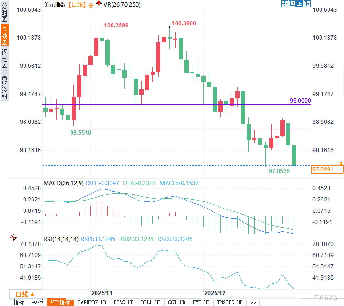 012月23日,星期二。外汇市场正处于年末交投清淡的特殊时段,冬季假期临近导致市场流动性明显收缩。在此背景下,美元指数近期呈现出显著的回调态势,从阶段性高点100.39附近持续走低,当前欧洲时段已跌至97.90一 ...
