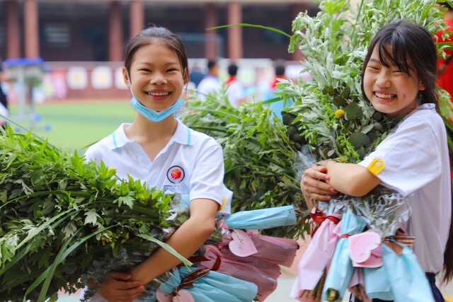 “沉浸体验”衍生精彩,中医传承拥有更多“种子” 漫步校园,中医药元素俯拾皆是。沉浸其中,是一种美的享受。 “本草飘香”长廊墙壁挂满了中草药图画,“翰墨杏林”长廊展示着“中医药”主题的硬笔书法作品,这些都是学生们悉心创作的作品;校园一隅,摆放着几辆小推车,展示着孩子们亲手做的极具中医特色的扇子、香牌、书签、香囊等;而在中草药种植基地“济和园”,板蓝根、百日草等一组组中草药植株整齐排列,更是学校一道绿意盎然的好风景。 从认知到认同,从观察到敬畏——校园环境成为“无声的教师”,让文化传承从说教走向沉浸。在此成长的孩子们,被满满的“岐黄文化”温柔地包裹着。