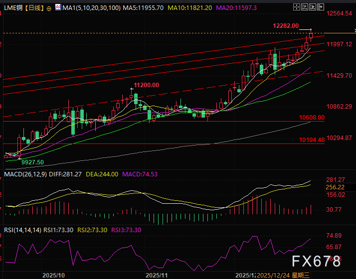 0周三(12月24日)亚欧时段铜价强势刷新历史纪录,伦敦金属交易所铜现货报价一举站稳12000美元,盘中更是快速拉升超过1%触及12282美元的高位,2025年以来累计涨幅飙升接近40%,创下2009年以来的最大年度涨幅。 ...