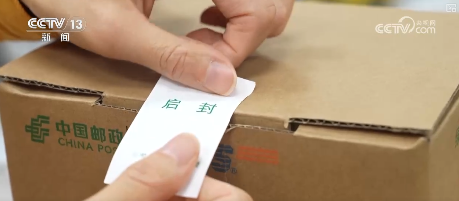 中国邮政福州大厦支局支局长潘美玲介绍,比如这种小一点的纸箱,它里面一般是装一些轻小的物品,所以采取“一”字形封装方式,这边是断点。这种中型的包装箱一般采取“十”字形的封箱方式,中间也是断开的。这种大一点的纸箱一般采取“艹”字形或“工”字形的封箱方式。以往像这种箱子一般用缠绕式,中间没有断点。使用新型包装方式后,大大减少了胶带的使用量。