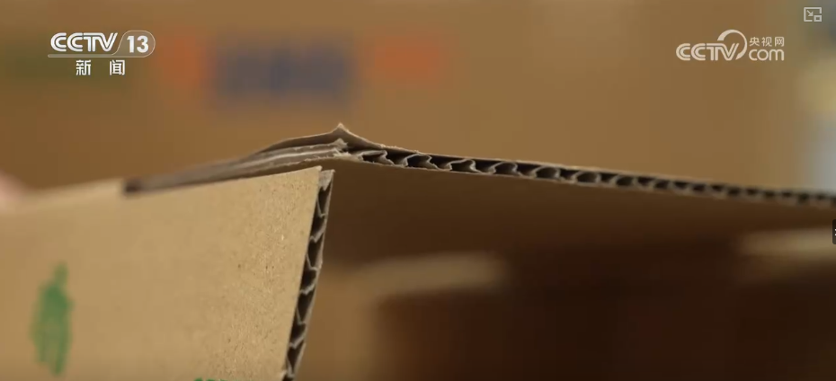 在快递的箱子上会常用到的胶带,这里所提供的胶带也都是可降解的胶带。在箱子上也会有一些绿色环保的元素,比如这里提供的免胶箱,在寄送快递的时候只需要贴上这样的一张启封贴,就不用再使用胶带进行包装。据了解,这里提供的纸箱是像这样的3层瓦楞纸箱,相比于传统的5层瓦楞纸箱更加绿色环保。