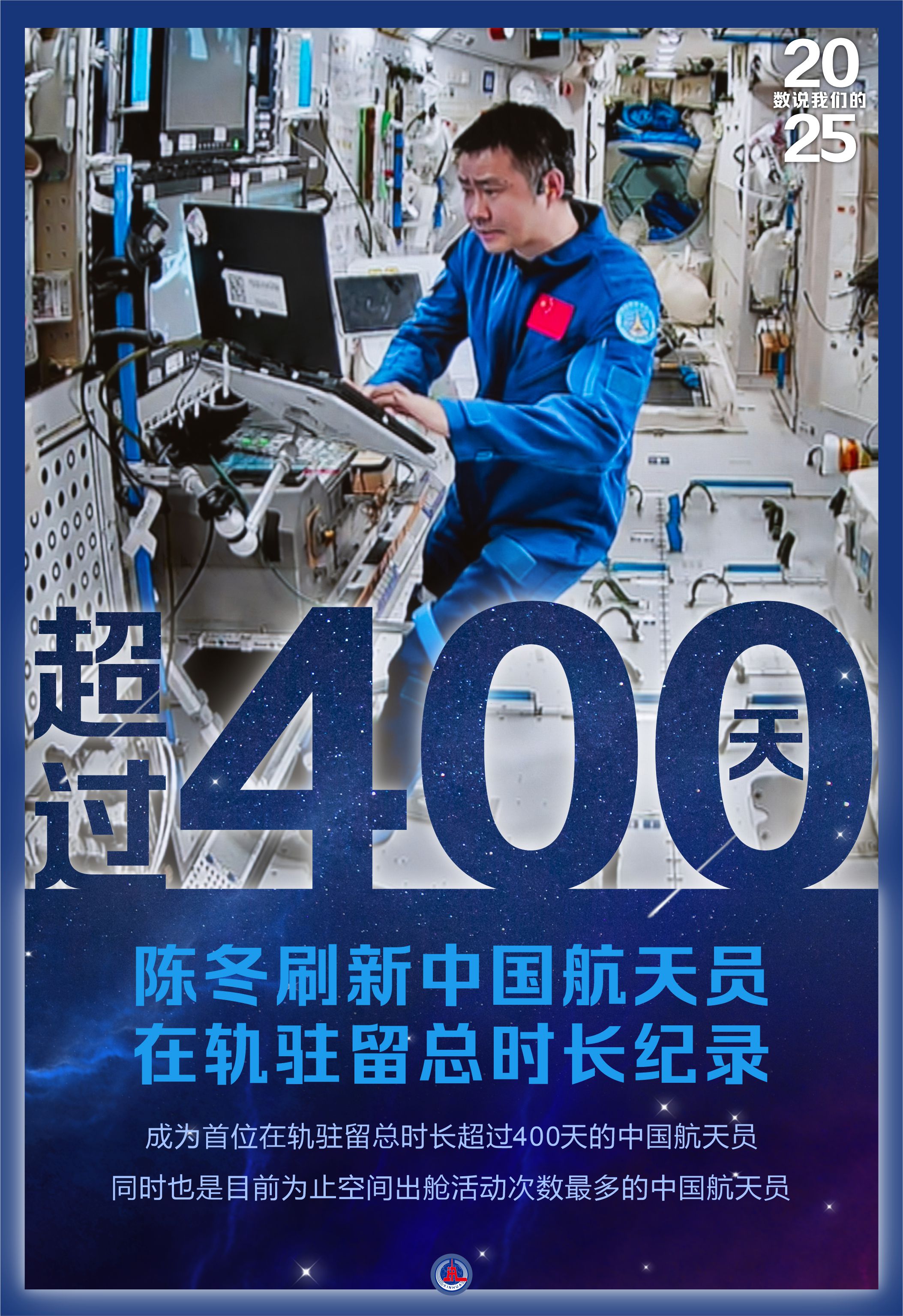 神舟二十号航天员乘组11月14日结束长达204天的在轨驻留,安全返回东风着陆场,指令长陈冬成为首位在轨驻留总时长超过400天的中国航天员,同时也是目前为止空间出舱活动次数最多的中国航天员,“双突破”展现了中国载人航天近地空间乃至地月空间活动能力的稳步提升。↓