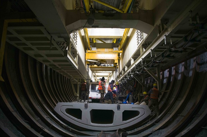 工人在乌尉高速公路天山胜利隧道中导洞内施工(2021年2月4日摄)。新华社记者 胡虎虎 摄 彼时,世界同业普遍预判:按常规工艺掘进,隧道工期需耗时10年;即便采用最先进技术,也需7至8年方能竣工。 这座世界最长高速公路隧道,需在海拔3000米以上的雪山腹地,开凿双向四车道,全长相当于5座南京长江大桥公路桥总长,最大埋深超1112米。更棘手的是,隧道需穿越16个地质断裂带,直面高地应力、高地震烈度、高寒高海拔等多重考验,是名副其实的“咽喉”工程。