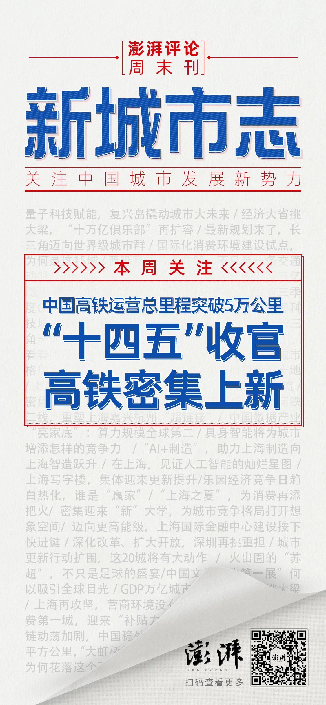 12月26日,列车驶入宜昌北站(无人机照片)。 5万公里之后,中国高铁奔向何方 那么,5万公里之后,“十五五”时期的高铁和运营,又有哪些新气象? 首先,随着高铁运营里程达到5万公里新高度,以及“八纵八横”高铁网已建成投产80%以上,未来高铁网络规模的扩张速度当有所放缓。 事实上,“十四五”期间高铁网络总体扩张速度已经明显放慢节奏。如从2013年高铁运营里程首次突破1万公里,再到2021年突破4万公里,平均差不多是2-3年新增1万公里。但从2021年的4万公里到2025年的5万公里,用了4年时间。这种建设节奏的变化,实际也是高铁建设进入新阶段的必然趋势。 其次,建设重点将进一步转向提升重点城市群、都市圈内部和相互之间的连接效率。 如湖北提出,贯通沿江、京港(台)、呼南等高铁主通道,完善以武汉“超米字型”铁路枢纽为核心的省域高铁布局。 推进沪渝、京港澳等“两纵两横”高速公路主通道扩容提质,完善重点区域高速公路布局;广东明确,优化“三横六纵两联”综合运输通道布局,推动联接京津冀、长三角、成渝等区域的高标准铁路通道规划建设,研究谋划北部横向通道,完善东西两翼陆海通道功能,加密跨江跨海和出省通道,建设“轨道上的大湾区”;福建则提出,推进“三纵六横”铁路网建设,完善沿海高铁通道,加快完善都市圈城际铁路、轨道交通、快速干线公路网络,提升福州都市圈、厦漳泉都市圈同城化水平……另外,京沪、沪杭、广深等也正在推进建设“第二高铁”。 相对而言,这些地区经济和人口都比较密集,未来发展对于高铁通行的现实需求仍非常可观。继续加密这些地区的高铁线路,提高通达效率,无论是服务好本地区的经济发展,还是对促进国内统一大市场建设而言,都极具现实价值。 再者,高铁技术和运营模式有望迎来新突破。 今年9月,交通运输部办公厅印发《交通强国建设试点申报方向指引(2025年)》。研究建设高速磁浮系统被列为“交通基础设施更新提质”的重要方向之一。其中就包括,在运输需求集中的城市群或都市圈,坚持经济适用的原则,建设时速600公里高速磁浮达速试验线等。 河北省“十五五”规划建议中提出,推动重大交通基础设施布局建设,前瞻研究磁悬浮列车等京雄未来交通模式。此外,广州、深圳、杭州、成渝等多地也在相关规划中明确要预留高速磁悬浮线路或推进相关建设。“十五五”时期,这方面会否迎来实质性突破,值得期待。 随着高铁线路运营规模的扩大,如何提升高铁与其他交通工具的线网融合水平,也将是一个越来越重要的工作。这方面,多地也已有明确布局。如北京提出,完善重点交通廊道,加强“三城一区”等重点功能区交通联通,推动“八站两场”提质发展,加强民航、铁路与城市交通协同融合,提高交通整体运行效率;重庆明确,推进轨道交通“四网融合”;宁夏回族自治区则要求完善现代化综合交通运输体系,加强跨区域统筹布局、跨方式一体衔接……这些都旨在构建一个更为立体化、高效率的综合交通运输体系。 另外,在扩大内需上升为战略之举的大背景下,高铁建设和线路优化在更好服务文旅等促消费方面或也将有更多倾斜。数据显示,沪昆高铁杭州至长沙段2014年建成通车后,10年间,江西年度国内旅游接待总人数由2.48亿人次飙升至8.18亿人次,旅游总收入更是实现从1896亿元到9668亿元的惊人跨越。应该说,高铁在这方面的催化剂作用还有很大空间可以挖掘。 可以预期,从5万公里再出发,面向“十五五”,中国高铁网正在打开新格局,朝着更智能、更融合、更高效的方向继续升级,在提升社会运转效率、推动区域协调发展、激发经济动能等方面扮演更重要的角色。