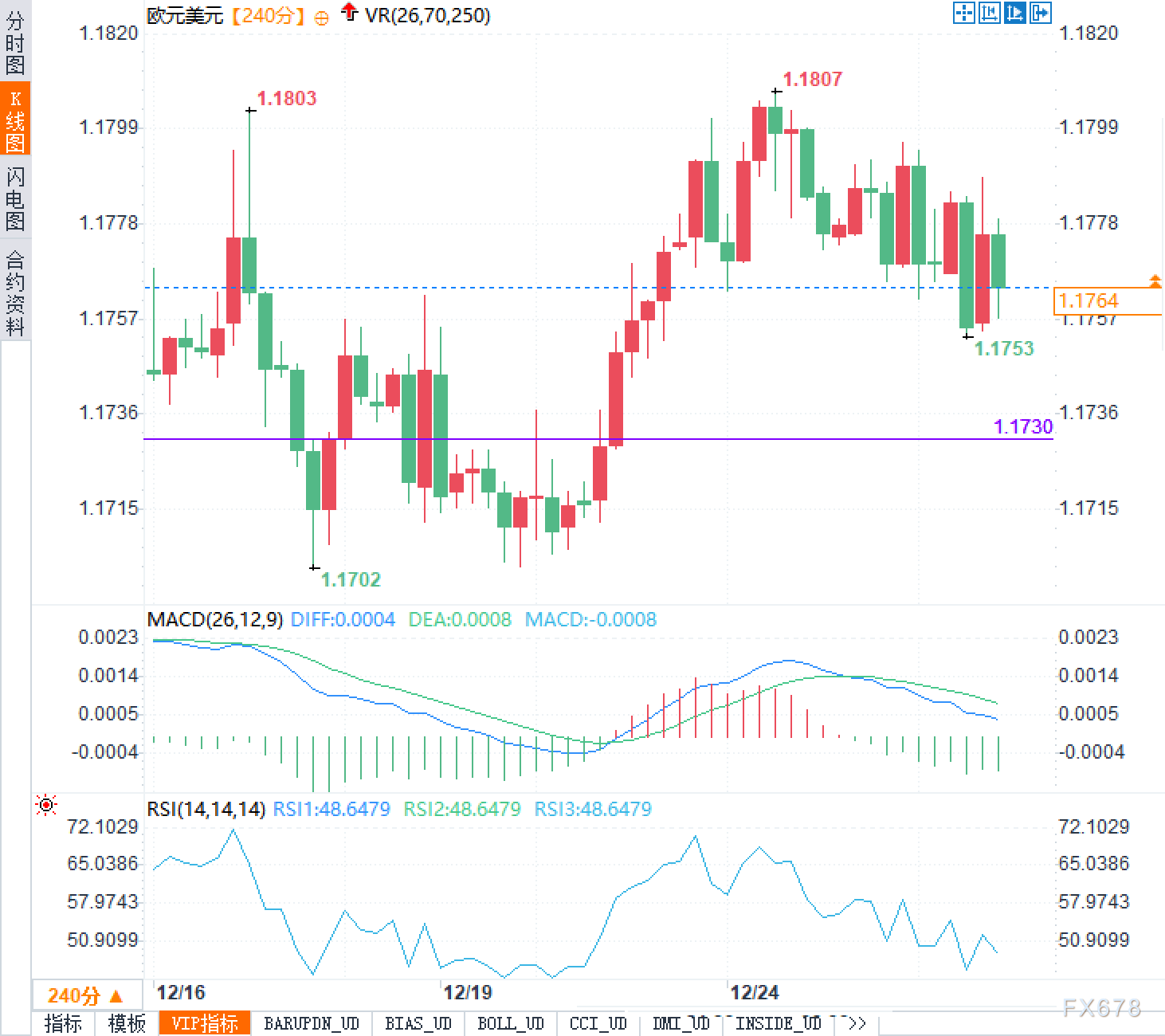 0周一(12月29日)欧元兑美元延续回落节奏,欧洲时段汇价在1.1765附近交投,连续第三个交易日走低。上周汇价一度上探1.1800上方并刷新阶段高点,但随后在高位出现明显获利回吐,短线从“冲高扩张”转入“回撤消化” ...
