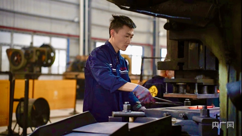 黎勇介绍名为“海棠依旧”的五金创新产品(央广网发 陈智超 摄) 2010年,黎勇重新拿起锤头,正式踏入五金行业。然而,真正的传承从不是简单的重复。两代人之间,很快出现了观念的碰撞。 “我和他最大的分歧,就是我比较执着于老一辈传下来的手工技艺,他却一门心思要引进各类先进设备。”黎勇父亲、“飞天”刀剪第四代传承人黎光明笑着回忆起当年与儿子的争执,“不过最后我们还是达成了和解,引进新设备的同时,传统工艺也要守住。我们也凭借独特的‘龙水小五金锻打技艺’,产品在全国各地都格外吃香。” 父传子,师带徒。传承是手把手传递的温度,也是心对心的领悟。 黎光明的徒弟罗孝均,总忘不了当年学艺的一段往事。他曾为了拿捏准一个锻打的火候,反复试练,却总也摸不透那股恰到好处的力道。“那时差点泄了气。直到师父告诉我,我们龙水人打铁,不能光靠力气,得靠心去感受。”罗孝均说这句话重新点燃了他的信心。