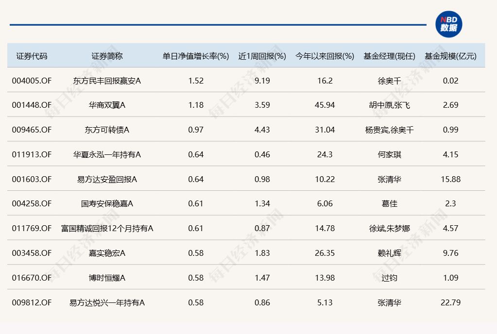 每经记者|肖芮冬 每经编辑|赵云 12月30日,市场午后震荡上扬,沪指收出十连阳,深成指、创业板指盘中均涨超0.5%。机器人概念持续爆发,AI应用端表现活跃,商业航天概念整体冲高回落。海南、零售等板块跌幅居前。全市场超3400只个股下跌。沪深两市成交额2.14万亿元,较上一个交易日放量32亿。 下面一起来看今天公募基金的表现。 (注:榜单1、榜单2仅选取灵活配置型、偏股混合型和普通股票型三类产品作为主动基金的代表,纳入统计;债基相关榜单包括各类主、被动债券型基金) 1.单日涨幅榜