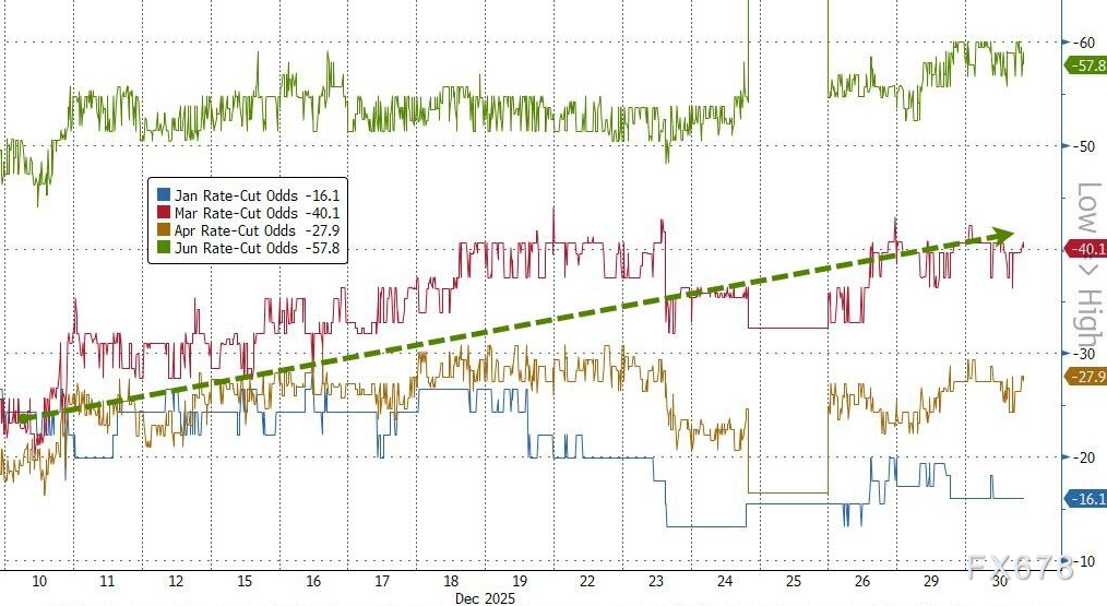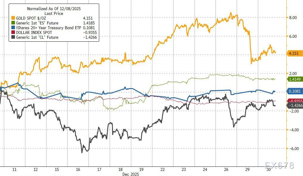 美联储12月鸽派降息后,市场宽松交易持续。年末流动性清淡,投资者聚焦会议纪要以寻求2026年政策线索。纪要显示FOMC内部对经济主要风险存在深刻分歧——一方担忧就业,另一方警惕通胀。 ![]() 周三(12月31日)亚市早盘时段,现货黄金窄幅震荡,目前交投于每盎司4335美元附近,仍处于年度较高位;美原油窄幅震荡,交投于每桶57.95美元附近;美元指数于98.25附近窄幅震荡,24日一度触及97.75的近三个月低点。 ![]() ![]() 在美联储内部严重分歧(创下37年来最多反对票)暴露后,政策前景显得扑朔迷离,但亢奋的市场却似乎浑然未觉。 PNC资产管理集团首席投资官阿曼达·阿加蒂周二比喻道:“股市就像糖果店里的孩童,正为追逐更多政策宽松和更鸽派的美联储而沉醉于糖分飙升的快感,却浑然不知这对自身利弊几何。” “债券市场则像屋内的成年人,正夺走孩子最后的棒棒糖。这或许是可观测市场历史上,首次出现市场对财政赤字和债务水平问题作出反应。我认为长端收益率无疑将持续面临上行压力。” ![]() 他补充称,若会议纪要明确倾向2026年进一步降息,可能对美元及美债收益率构成压力。反之,若纪要就降息议题呈现更平衡或谨慎的基调,则可能在短期内形成支撑。 市场核心关切可归纳为两大焦点:分歧程度究竟如何?以及对“非量化宽松”政策作何表述? 美联储究竟想传递什么信号? 会议纪要突显出19位政策制定委员会成员对经济最大威胁的深刻分歧:究竟是就业市场疲软,还是通胀持续高企。 多数官员认为,若通胀能如预期逐步回落,进一步降息将是适宜的举措。然而,部分官员明确表示,他们主张在12月会议后应维持利率不变“一段时间”。 纪要显示,即使是支持降息的部分官员也持保留态度。“少数支持本次会议下调政策利率的与会者指出,这一决策是艰难权衡的结果——他们原本也可能支持维持目标利率区间不变。”这段表述暗示,内部分歧或许并未如外界揣测的那般尖锐。 但会议纪要仍明确指出,政策制定者们对于通胀与失业何者对美国经济构成更大风险,仍存在显著分歧。“多数与会者认为,向更中性的政策立场调整,将有助于防范劳动力市场状况出现严重恶化的可能性。” 与此同时,会议纪要进一步指出:“部分与会者强调通胀高企可能固化的风险,并表示在通胀读数持续处于高位的情况下进一步降息,恐将被市场误读为决策者降低了对实现2%通胀目标的承诺力度。” 最后,纪要确认与会者普遍判断准备金余额已“降至充裕水平”——这意味着启动短期国债购买操作以长期维持充裕准备金供给是适宜的。 目前市场对上述信息反应平淡:降息预期概率未变,股市虽表现活跃却未能形成明确方向。 综合来看,美元正处于“鸽派预期”与“通胀现实”的拉锯战中。会议纪要未能给出单一方向,反而凸显了这种矛盾。市场在追逐降息“糖果”的同时,对通胀“戒尺”心存忌惮,这种矛盾心理使美元陷入上有顶、下有底的纠结行情之中。 ![]() 北京时间9:11,美元指数现报98.23。