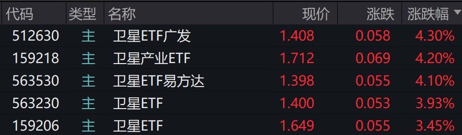 每经记者|叶峰 每经编辑|肖芮冬 卫星概念股走强,北斗星通涨停,航天电子、中国卫星涨超7%。 受盘面影响,卫星相关ETF涨约4%。