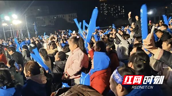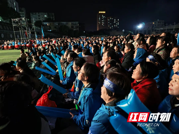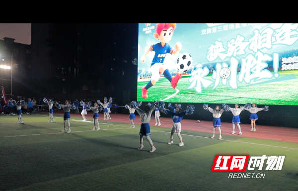 随着暖场活动拉开帷幕,《歌唱祖国》《永冲锋》《双牌味道》等节目轮番上演。演员们精神饱满、舞姿昂扬,用精湛的表演点燃了全场热情。主持人带领大家齐声喊出“永州加油”“永州必胜”的口号,声浪一波高过一波,震耳欲聋的呐喊声穿透体育场,回荡在城市夜空。