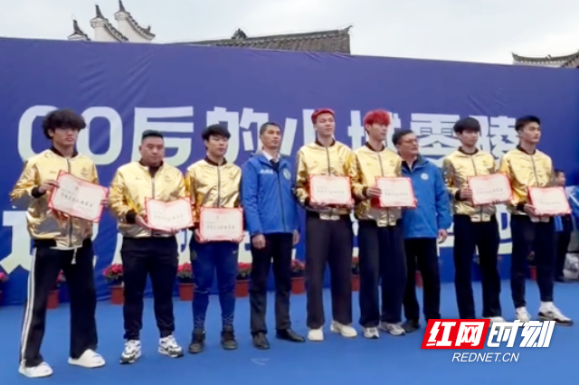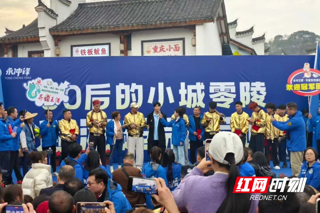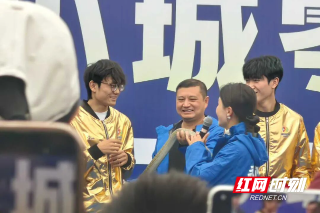 队伍行至零陵古城牌楼,迎接仪式进入最高潮。球迷方阵旌旗招摇,汉服方阵衣袂翩跹,零陵大鼓方阵鼓声震天,学生仪仗方阵花环舞动——四阵依次排开,击鼓声、呐喊声与歌声交织奔腾,汇成一片欢腾的海洋。在零陵古城瓦肆广场举行的球迷见面会上,球员与市民零距离互动,温情与激情相融。零陵文旅部门为谷文杰、林昊等队员正式颁发“零陵文旅推荐官”聘书,期待他们以冠军影响力助力家乡文旅传播。