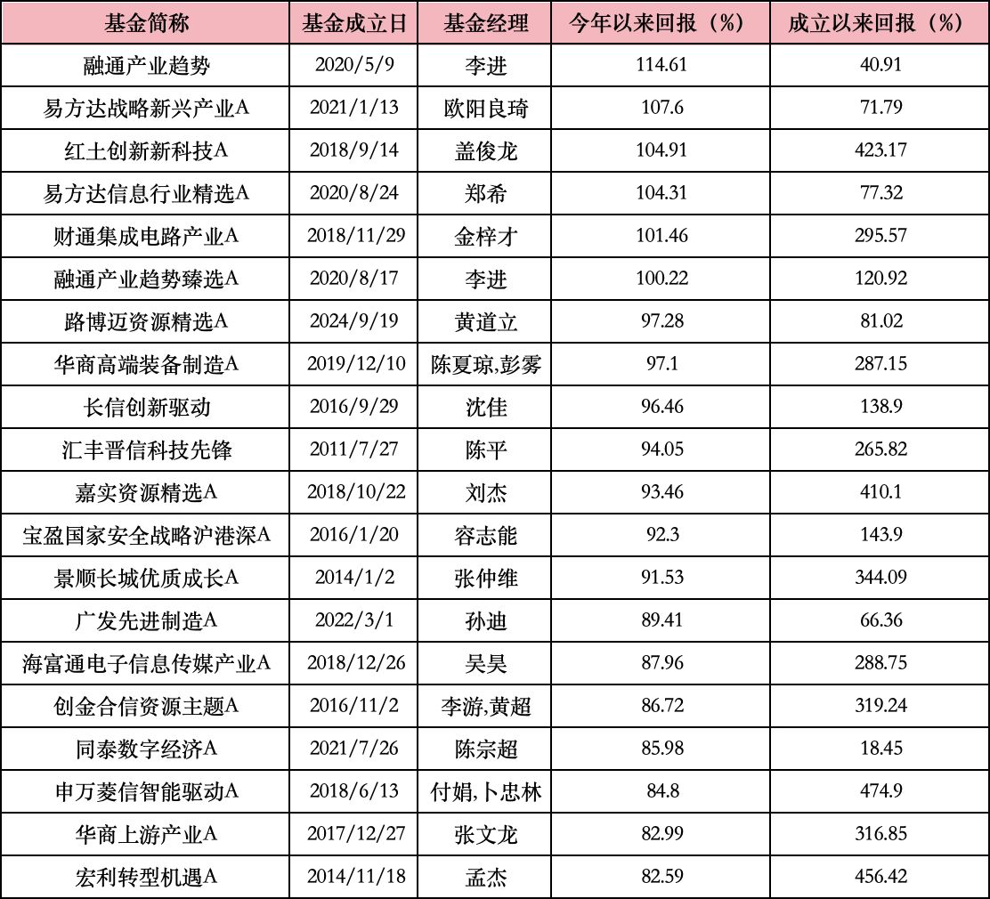 每经记者|李蕾 每经编辑|肖芮冬 《每日经济新闻》获悉,随着12月31日基金净值的披露,2025年公募基金主动权益排名之争终于落下帷幕。 混合型基金方面,由任桀管理的永赢科技智选A以233.29%的年度回报成为冠军,同时也是全市场主动基金的冠军。 混合型基金的亚军是韩浩管理的中航机遇领航A,2025年全年净值上涨168.92%;季军则是廖星昊管理的红土创新新兴产业A,2025年回报为148.64%。 混合型基金2025年业绩前20名请见下表(同一只基金取回报更高份额,下同):