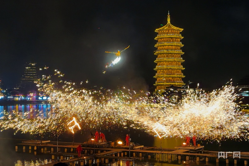 1600℃铁水泼向夜空,化作漫天闪烁的“钢花”;定制“天马”飞行器同步绽放冷焰火,在夜幕中划出璀璨轨迹——湖南长沙铜官窑国风乐园这场传统与现代交织的非遗盛宴,为2026年拉开了崭新序幕。