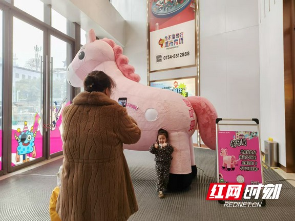 华新步步高广场内,迎新装饰吸引市民驻足拍照。