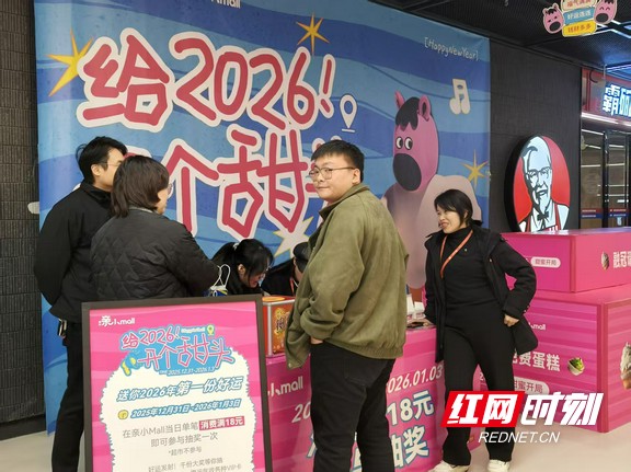 “给2026开个甜头”抽奖活动现场。 在融冠亲城mall内,浓厚的文创与互动氛围同样吸引了不少市民。以“衡阳星星报”为创意设计的拍照墙前,年轻人纷纷摆出姿势,留下具有城市特色的新年纪念。商场推出的“给2026开个甜头”抽奖活动也吸引了众多顾客参与,大家都希望为新的一年讨个好彩头。一位带着孩子游玩的市民告诉记者:“下午出来走走,感觉整个城市都活起来了,商场活动多、气氛好,孩子玩得特别开心。”