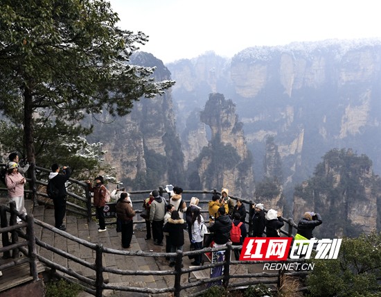 红网时刻新闻1月1日讯(通讯员 吴勇兵)2026年1月1日,湖南省张家界国家森林公园吸引各地游客前来欣赏冰雪峰林美景,乐享元旦假期好时光。