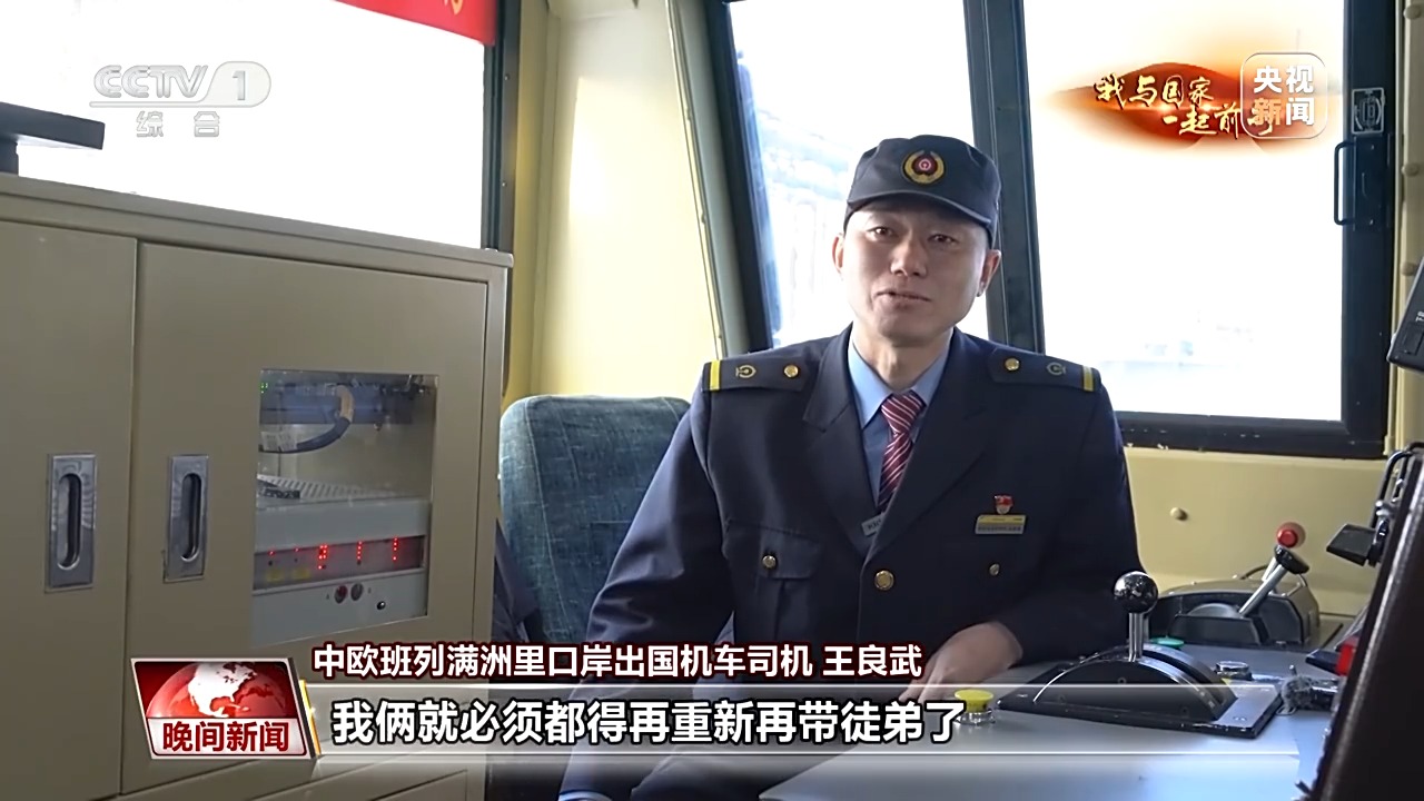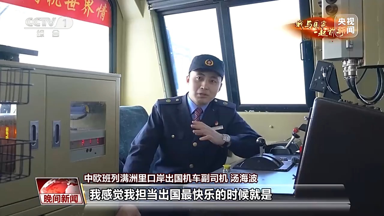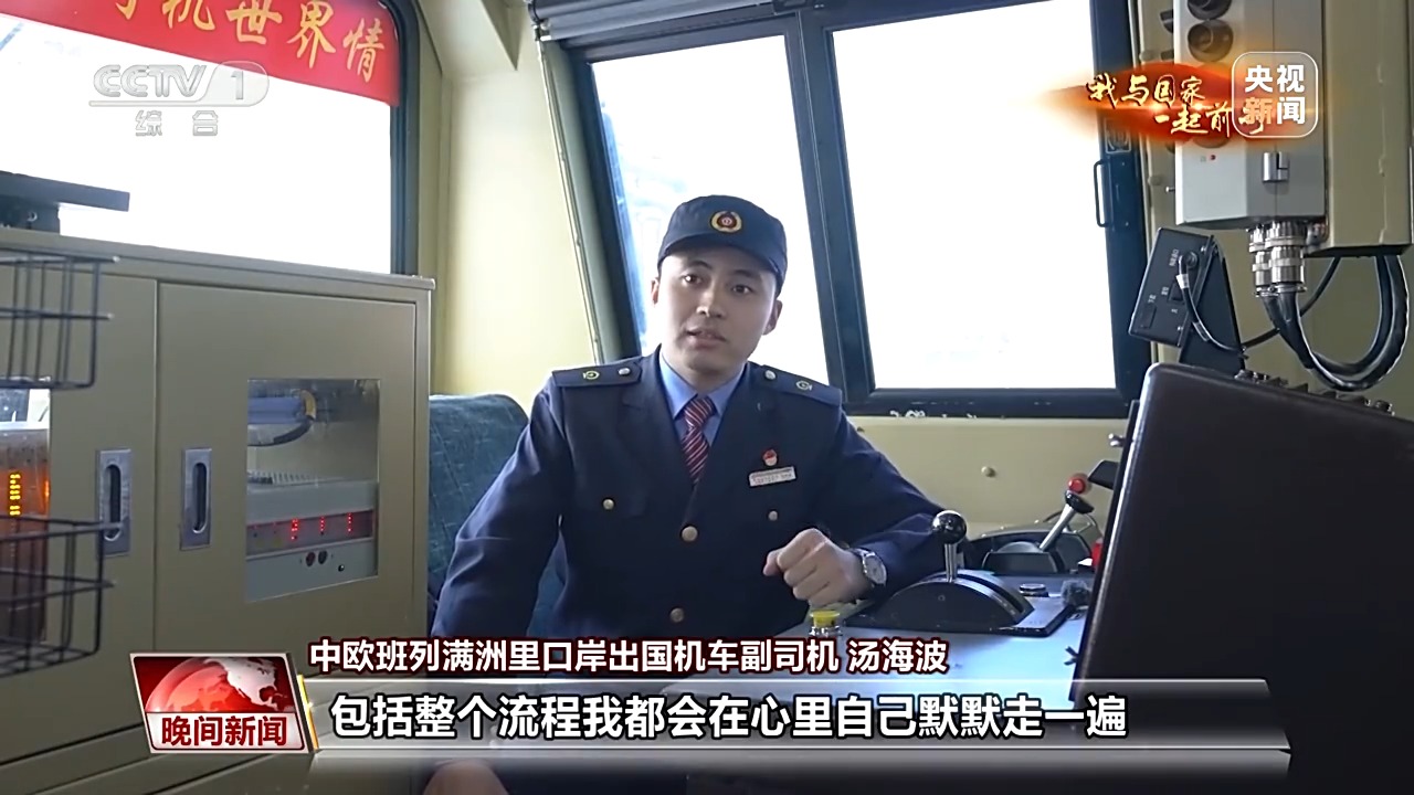 中欧班列满洲里口岸出国机车司机 王良武:我现在和他一样都是司机长,我俩就必须都得再重新再带徒弟了,就不能再在一起了。前两天我还跟他说,我说我不舍得离开你。作业的时候技术一定要过硬,在国内,基本上要把一个火车司机能干的活都干一遍了,才有这个机会到出国队伍里。 今年23岁的汤海波,是张晓军年龄最小的徒弟,已经迅速成长为一名出国副司机。