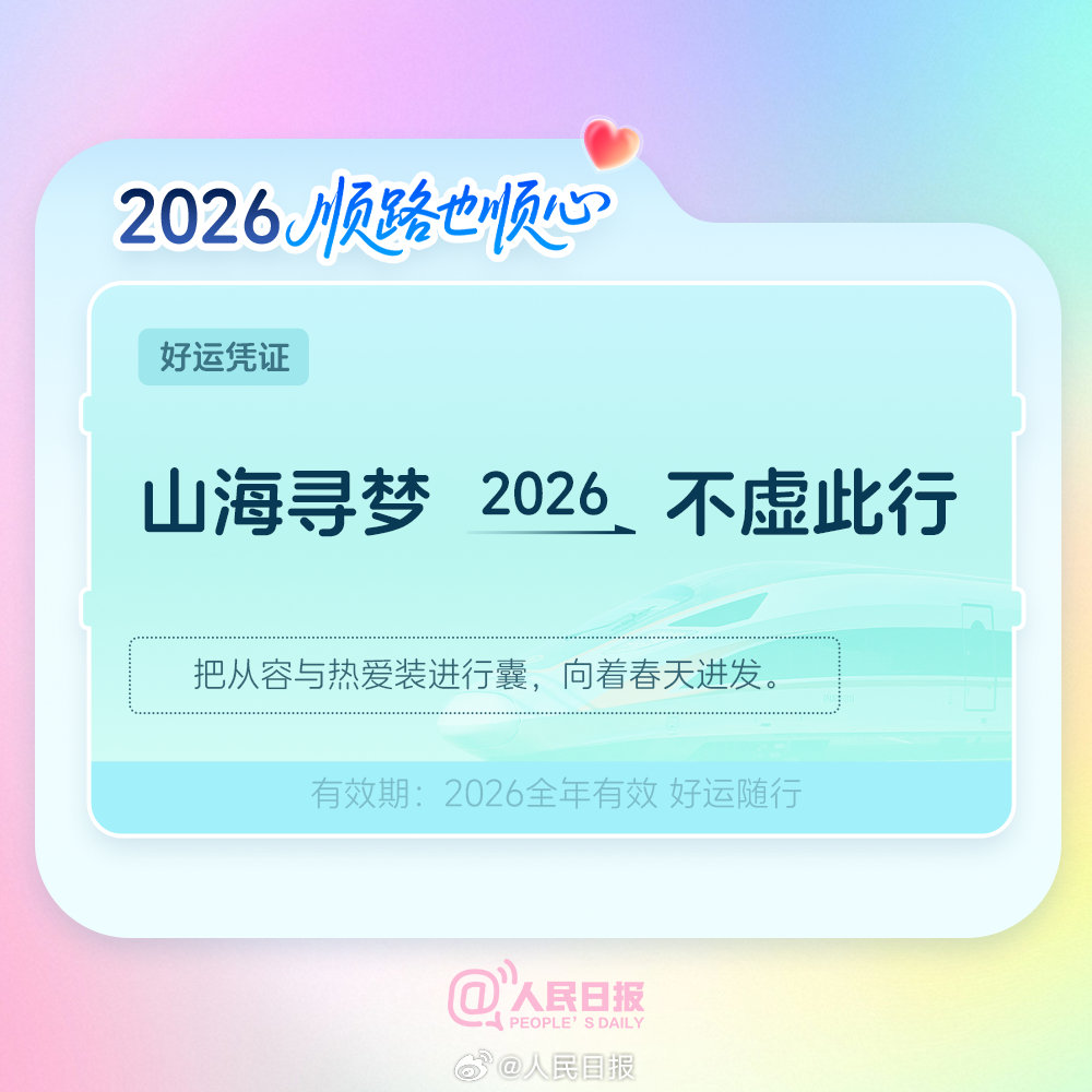 新的一年,我们满载过往的收获,奔赴美好的新程。这套2026幸福专列车票,诚邀每一位追梦人查收。早安,愿你2026顺路也顺心,不负时光,不负努力,一路向阳。