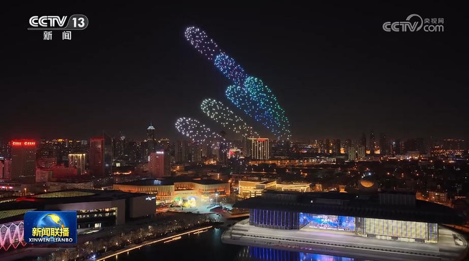 灯火璀璨迎新年。在广东广州、湖北武汉、辽宁大连等地的一处处地标前,跨年主题光影秀、灯光秀将夜晚装点得绚丽多彩。在江苏南京、天津杨柳青古镇等地,无人机表演为现场观众带来一场难忘的跨年视听体验。