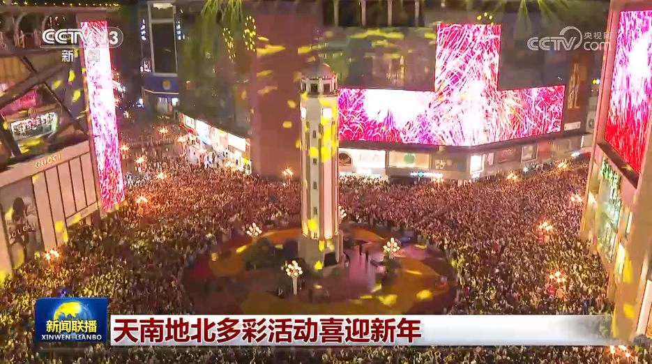 在上海吴淞口,绚烂的烟火循着夜色次第升空,层层绽放,映亮江面。在吉林松花江畔,烟花与音乐喷泉、江上游船、城市夜景相映成趣,人们置身其中,感受节日浓浓气氛。在甘肃敦煌,1200多件特色花灯被点亮,吸引数万名市民游客前来打卡拍照。在内蒙古呼和浩特,一场以“冰雪+非遗”为主题的跨年联欢精彩纷呈。在黑龙江漠河,天南地北的游客来到祖国最北端赏冰雪美景、品特色美食。在宁夏银川,各族群众身着节日盛装,通过特色巡游、集体歌舞等,共同迎接新年的到来。在安徽黟县宏村,人们手持各式非遗花灯,穿梭在青石板巷,将千年古村装点成流动的光影画卷。