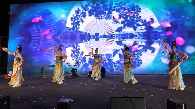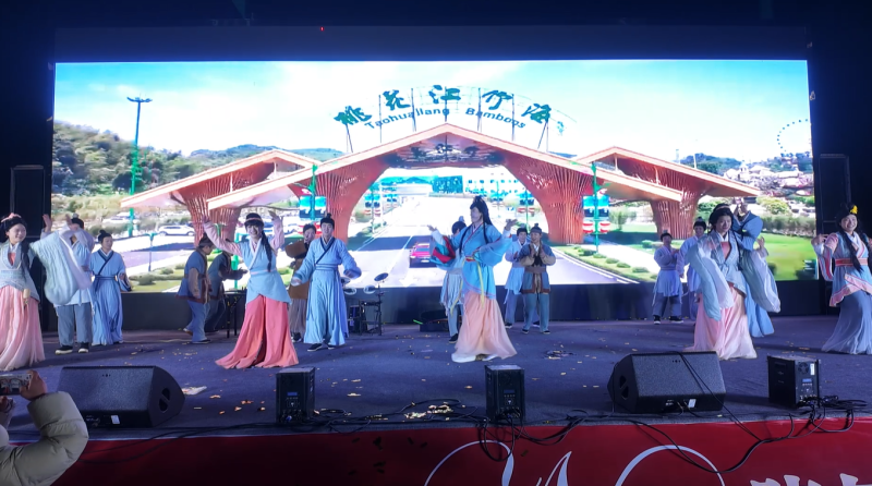 音乐会现场。莫非易/摄 19时30分,音乐会准时启幕。随着专业乐队奏响热场金曲,熟悉的旋律瞬间点燃全场氛围,观众们跟着节奏挥舞手中的荧光棒,竹影摇曳间星光闪烁,勾勒出一幅独具韵味的自然视听画卷。随后,《时代浪潮》《绝世舞姬》《APT》等风格各异的歌舞表演轮番登场,动感的节拍、优美的舞姿将现场气氛推向一个又一个高潮。演出间隙的抽奖环节更是惊喜连连,主持人通过“听音辨歌”等趣味互动游戏,送出精美礼品与竹海幻境折扣票等福利,为这场迎新年盛宴增添了更多欢乐色彩。