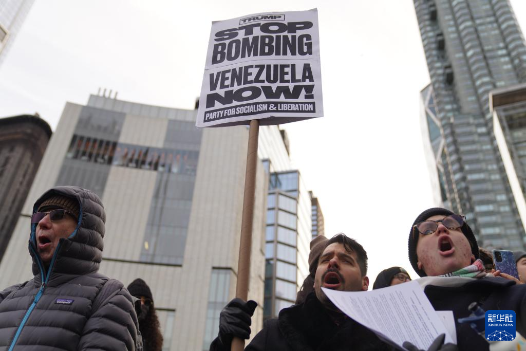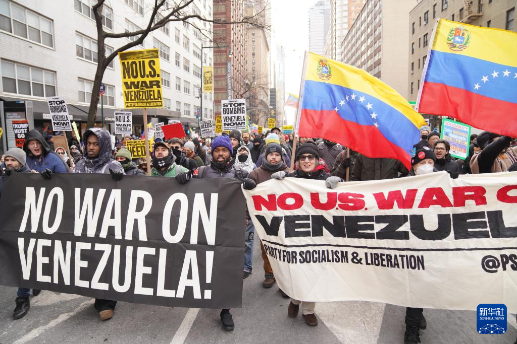 1月3日,在美国纽约,民众参加抗议集会。新华社记者 张凤国 摄 新华社纽约1月3日电(记者施春)美国100多个城市3日举行示威活动,抗议美国对委内瑞拉发动袭击,反对以武力手段颠覆别国政权。 这些示威活动由反战组织“即刻行动制止战争消除种族主义”联盟发起,当天在包括华盛顿、洛杉矶、波士顿、亚特兰大、芝加哥、丹佛、达拉斯、迈阿密等105个城市进行。