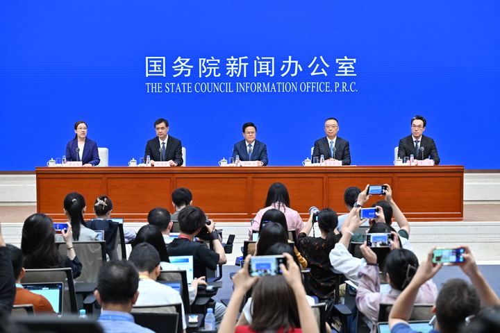 2025年7月9日,国务院新闻办公室举行“高质量完成‘十四五’规划”首场新闻发布会。新华社记者 李鑫 摄 随后3个多月时间,该系列主题发布会共举办38场,全面介绍各领域5年来的生动实践和伟大成就,展现出高质量发展的广阔前景。 一年来,宣传思想文化战线持续加强舆论引导,团结稳定鼓劲,做好正面宣传特别是经济宣传,不断唱响主旋律、弘扬正能量。 聚焦“十四五”收官,新闻媒体开展“活力中国调研行”等主题采访活动,打造“决胜‘十四五’ 打好收官战”等重点栏目,深入挖掘各地在新质生产力、绿色转型、城乡融合、高水平开放等方面的生动案例,切实强信心、鼓实劲、激活力、促发展。