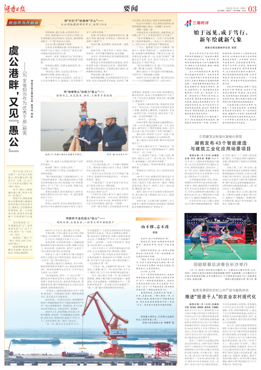 0此文刊载于1月2日《湖南日报》03版湖南日报全媒体记者 姜鸿丽 周磊两千年前,《列子》记载了一位年近九旬的愚公,面对横亘家门前的太行、王屋二山,立下“子子孙孙无穷匮也”的“移山”誓言。如今,湘江之畔新建的虞 ...