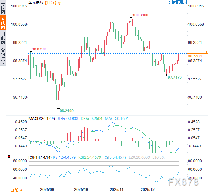 0美元在2026年初开局谨慎,第一季度将检验货币政策分歧、劳动力市场信号及风险情绪的影响。周一(1月5日)亚欧时段,美元指数小幅走高,涨幅约0.3%,交投于98.70附近。因委内瑞拉总统被捕,强化了美元作为避险资产 ...