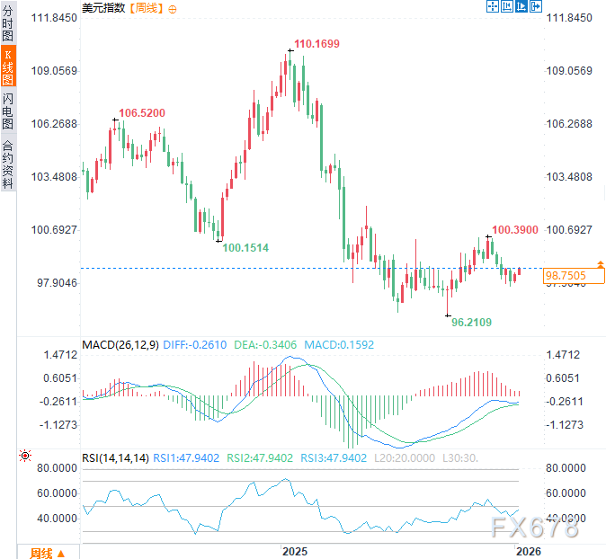 美元在2026年初开局谨慎,第一季度将检验货币政策分歧、劳动力市场信号及风险情绪的影响。周一(1月5日)亚欧时段,美元指数小幅走高,涨幅约0.3%,交投于98.70附近。因委内瑞拉总统被捕,强化了美元作为避险资产的资金流入。从日线和周线时间框架看,除非美元指数能收复100关口附近的关键阻力位,否则下行修正结构依然显著。 ![]() 1、美联储政策与利率 市场预计美联储将在2026年初实施25-50个基点的降息。 降息将削弱美元相对于其他主要货币的实际收益率优势。 影响:美联储鸽派立场通常会削弱美元,并支撑欧元、英镑和澳元等货币。 2、劳动力市场数据 2026年初的非农就业报告、失业率和薪资增长数据将影响市场对美联储宽松政策的预期。 若劳动力数据强于预期,可能短暂支撑美元;疲软数据则会加速其下跌。 影响:对美国就业数据高度敏感;意外结果可能触发日内剧烈波动。 3、风险情绪与全球宏观 积极的风险偏好情绪(股市上涨、全球紧张局势缓和)往往会将资金从美元等避险资产中抽离。 中东、亚洲或美洲等地缘政治局势发展,尤其是近期美国接管委内瑞拉的事态进展,可能暂时性推高美元作为对冲工具的需求。 影响:与基本面无关的风险偏好波动将引发美元短期资金流动。 4、外汇流动与储备动态 2026年初可能会出现储备持有结构的变化,从而降低对美元的需求。 资本轮动转向非美元资产(股票、大宗商品)将加剧第一季度的疲软态势。 影响:结构性流动造成持续下行压力,尤其是在下跌行情中。 技术展望——日线及周线时间框架 日线时间框架——短期倾向 ![]() 结构:高点逐步下移且波动剧烈的修正性盘整;偏向下行。 阻力位:100.0-100.5 支撑位:96.5-97.2 趋势:看跌,除非日线收盘站上100.5确认短期看涨反转。 周线时间框架——中期倾向 ![]() 结构:下降趋势伴随更低的高点;区间收窄暗示修正疲态。 强化看涨:周线收盘站上100-101 支撑位:95-96支撑区域 趋势:第一季度看跌延续;唯有测试95-96支撑后才可能企稳。 季度展望:随着美联储政策宽松和全球风险情绪改善叠加,美元可能在2026年初面临下行压力。交易者需关注96-97美元指数关键支撑带,以及100-101短期阻力。 北京时间14:29,美元指数现报98.68。