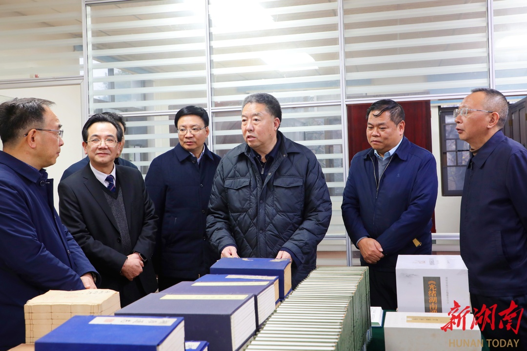1月4日下午,省政协主席毛万春率队在省地方志编纂院宣讲调研。图为毛万春参观湖南方志馆。 毛万春一行首先参观了湖南方志馆。在随后召开的座谈会上,与会人员观看了地方志形象宣传片《山水湘逢志敬湖南》,省地方志编纂院负责同志介绍了有关工作情况,与会人员围绕会议主题深入互动交流、提出意见建议。
