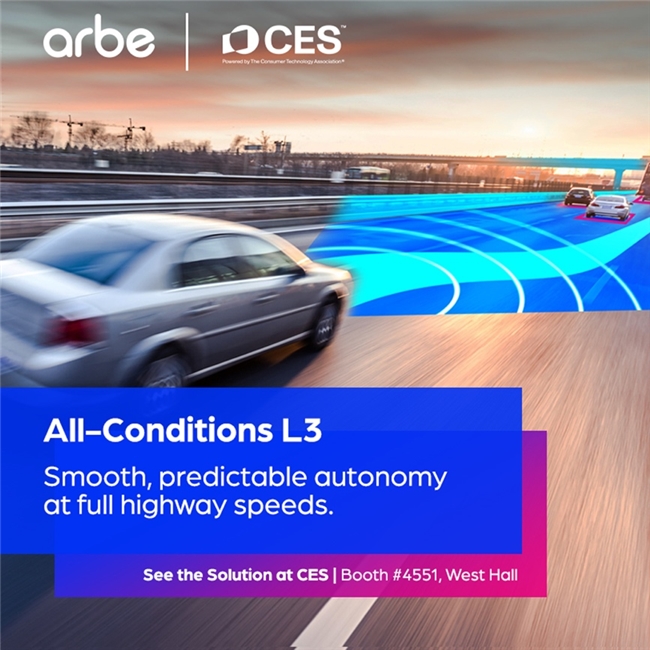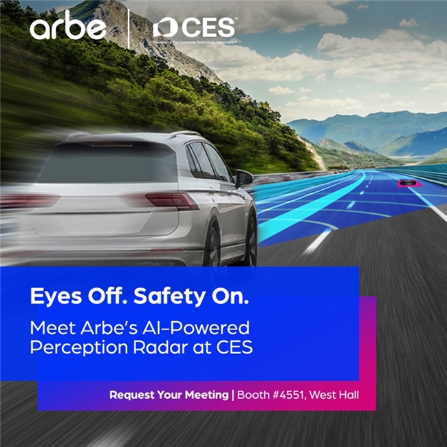 该车规级雷达凭借单帧超2万个原始点云的高密度检测能力,通过2304个通道实现高精度数据生成,为先进的感知与人工智能算法提供了坚实的硬件基础。Arbe高性能、低成本的雷达解决方案与英伟达强大的算力相结合,推动了自动驾驶技术的普及,使先进的感知功能变得触手可及、可靠且具有成本效益。 Arbe联合创始人兼首席执行官Kobi Marenko先生表示:“这一合作成果使我们在各种条件下为感知功能树立了新标杆,加速了更安全、更可靠、更具性价比的自动驾驶解决方案在全球汽车制造商中的推广应用。在此次CES展会上,我们将现场演示超高清雷达的实际运行状态,展现它如何在真实的高速公路速度下应对复杂的高速公路场景。” 要实现高速公路下的脱眼驾驶,精准的远程探测与物体分辨能力至关重要。在时速高达130公里(约80英里)的高速场景中,系统需在至少300米距离外可靠识别车辆与障碍物,以确保有充足时间平缓制动、变换车道或采取其他避险动作,同时避免对周边交通流造成干扰。Arbe的超高清雷达具备300米以上的点云探测能力,其出色的分辨率与动态范围可精准解析复杂高速公路场景,从而实现如真人驾驶般流畅的操控体验。 Arbe的高清雷达解决方案,具备出色的环境适应性,在雪、雨夹雪、雨、雾以及低能见度等各类复杂环境条件下,均能稳定可靠地输出性能。当其他传感器模式在上述场景中面临挑战时,Arbe的感知雷达凭借独特技术仍可保持可靠运行。该雷达与英伟达加速计算技术相结合,为系统提供了双重保障,确保在高速公路场景下实现流畅、可预测的脱眼自动驾驶,真正赢得消费者对行车安全的信赖。 聚焦2026年CES国际消费类电子产品展览会(CES 2026)现场演示,欢迎莅临拉斯维加斯会展中心西馆4551号展位